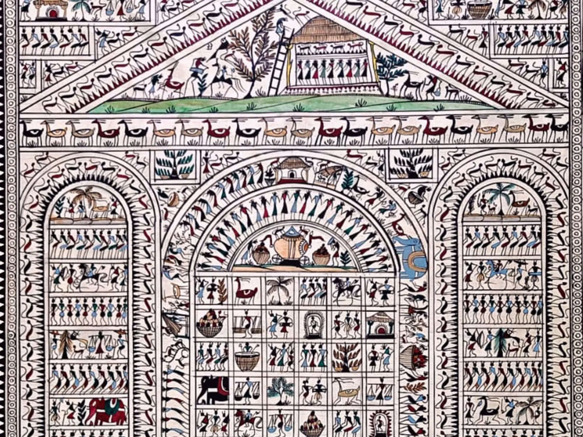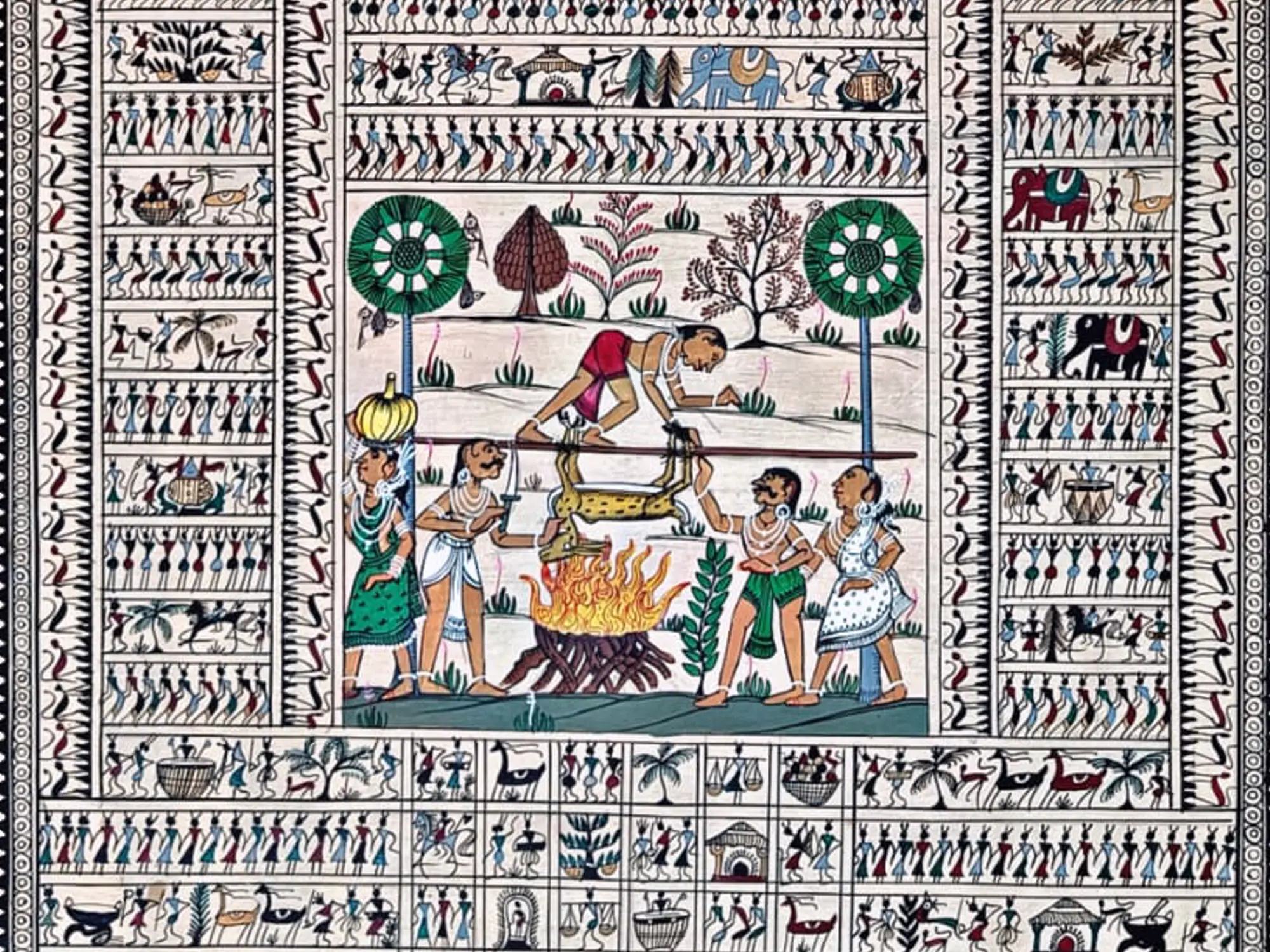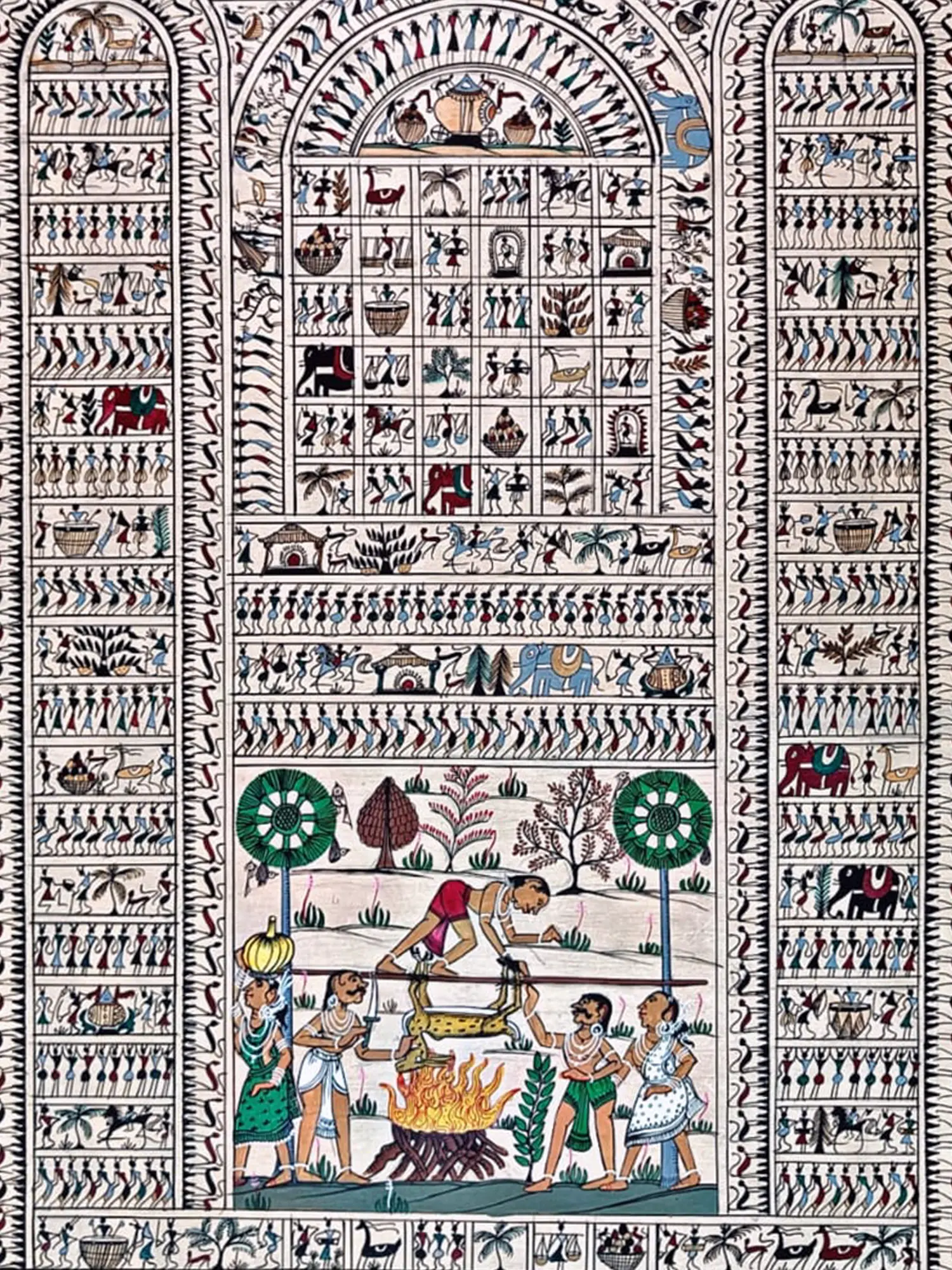 Nature’s Life - Warli Art by Pravin Mhase | Cow Dung and Acrylic on Manjarpat Cloth