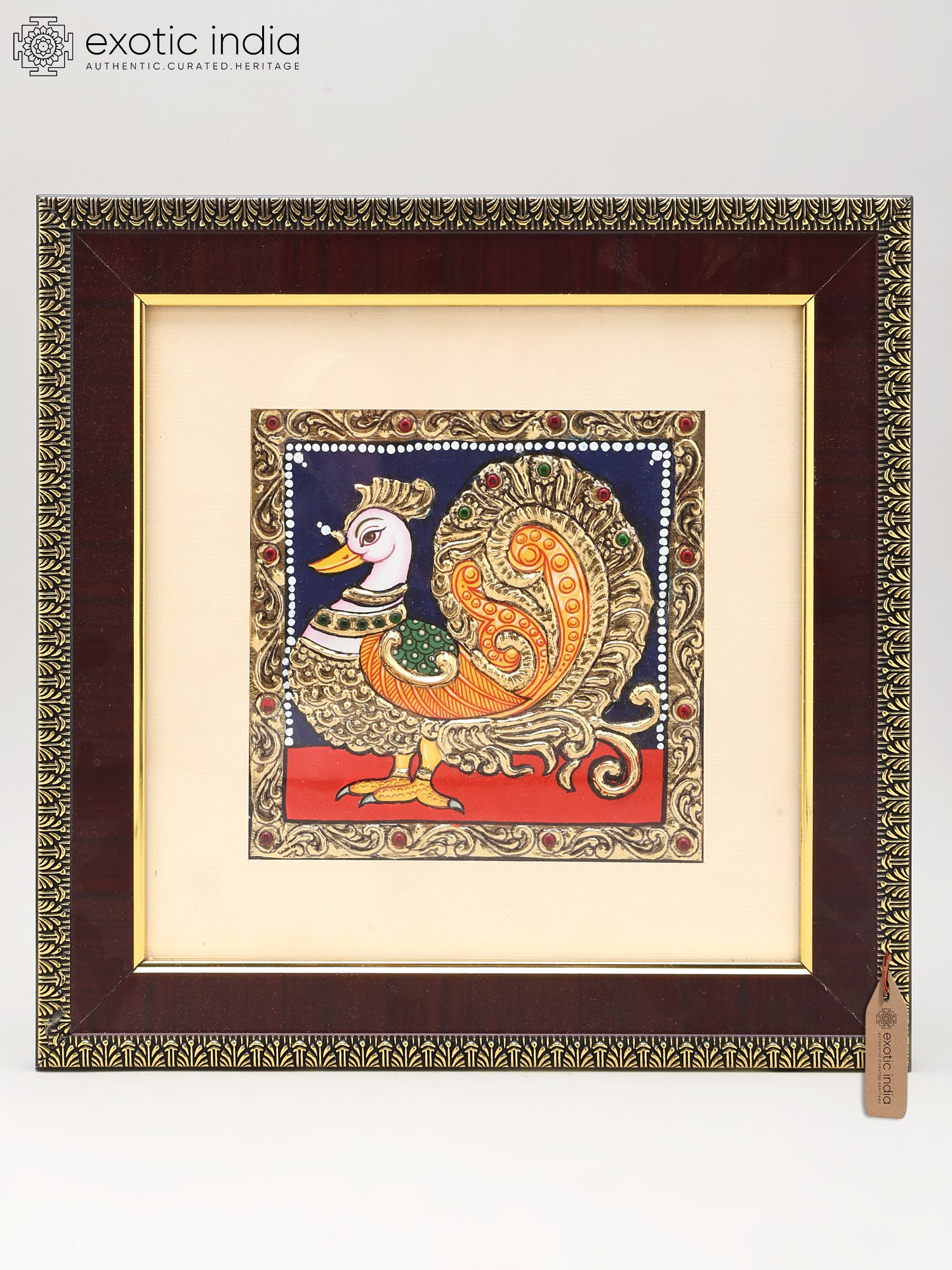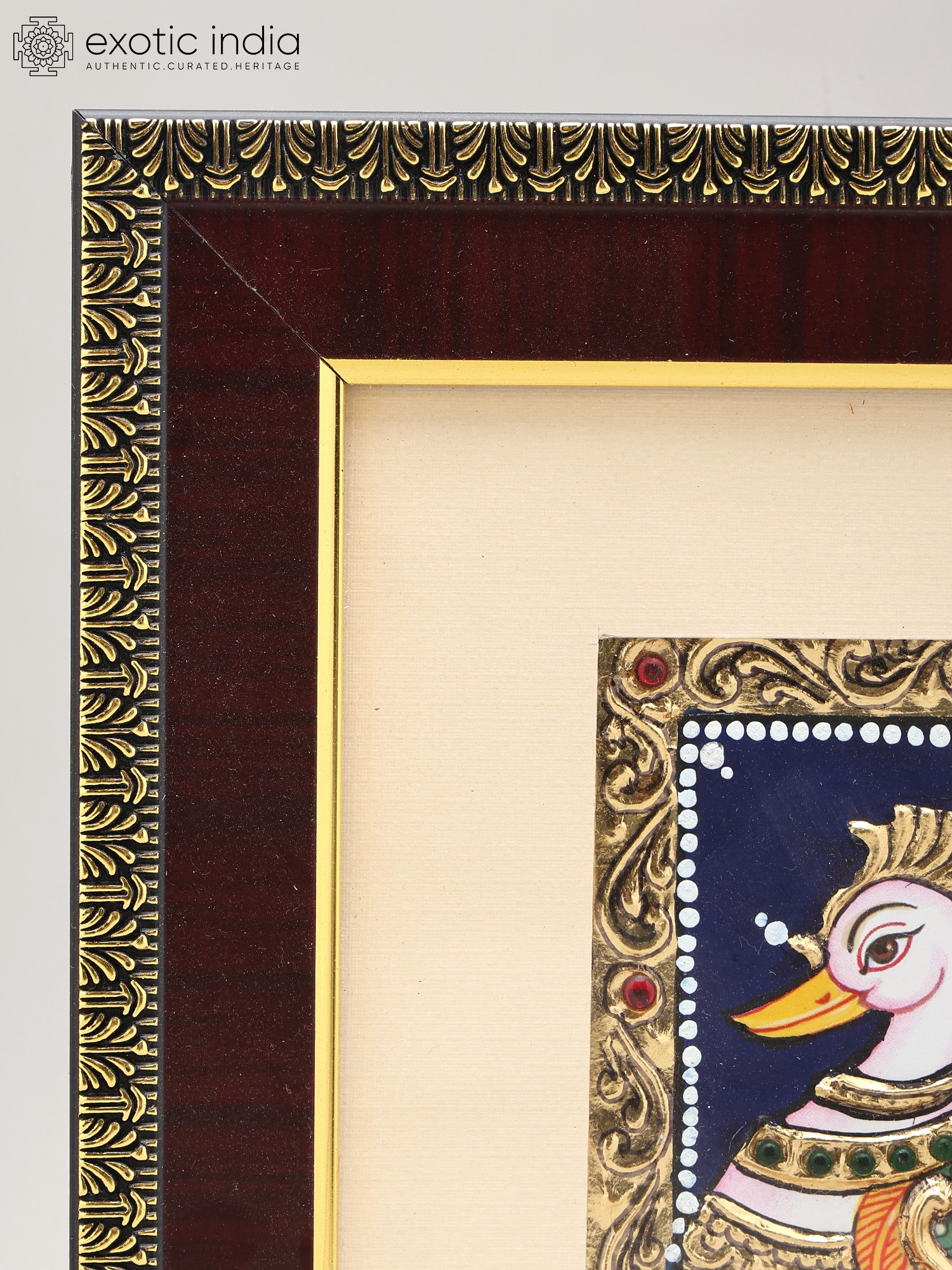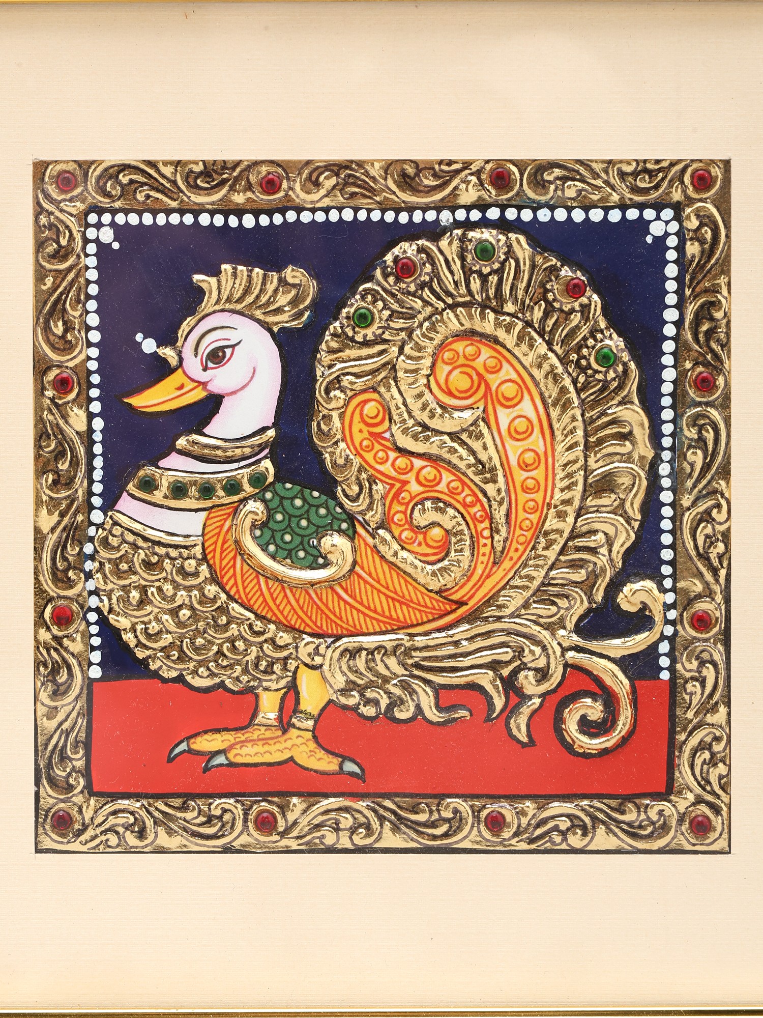 Standing Annam (Peacock) Tanjore Painting with Frame | Traditional Colour With 24 Karat Gold