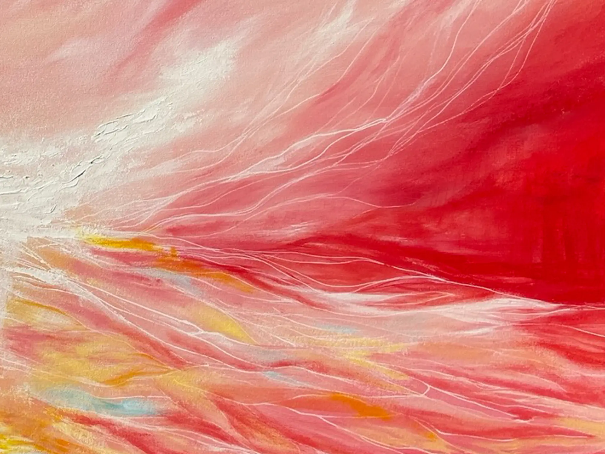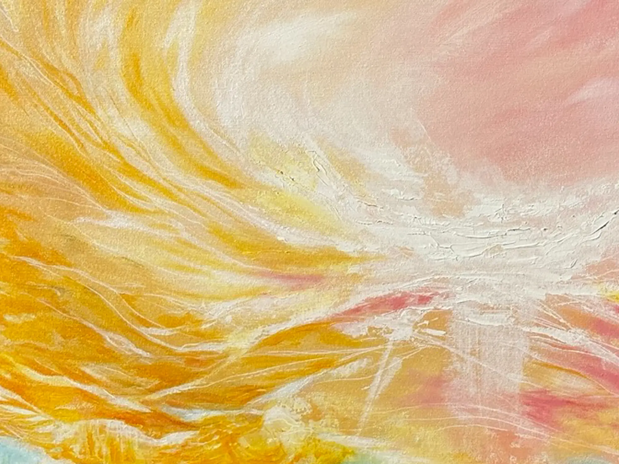 Measuring 48 inches in width and 36 inches in height, its generous scale makes a profound statement, filling any space with its commanding presence. The dynamic interplay of warm yellows, fiery reds, and cool blues creates a harmonious tension, mirroring the cyclical nature of life itself. Delicate white lines, like ethereal whispers, weave through the vibrant washes, adding a layer of intricate detail that rewards close observation. The textural elements, from impasto peaks to smooth transitions, contribute to a tactile richness that is profoundly engaging.