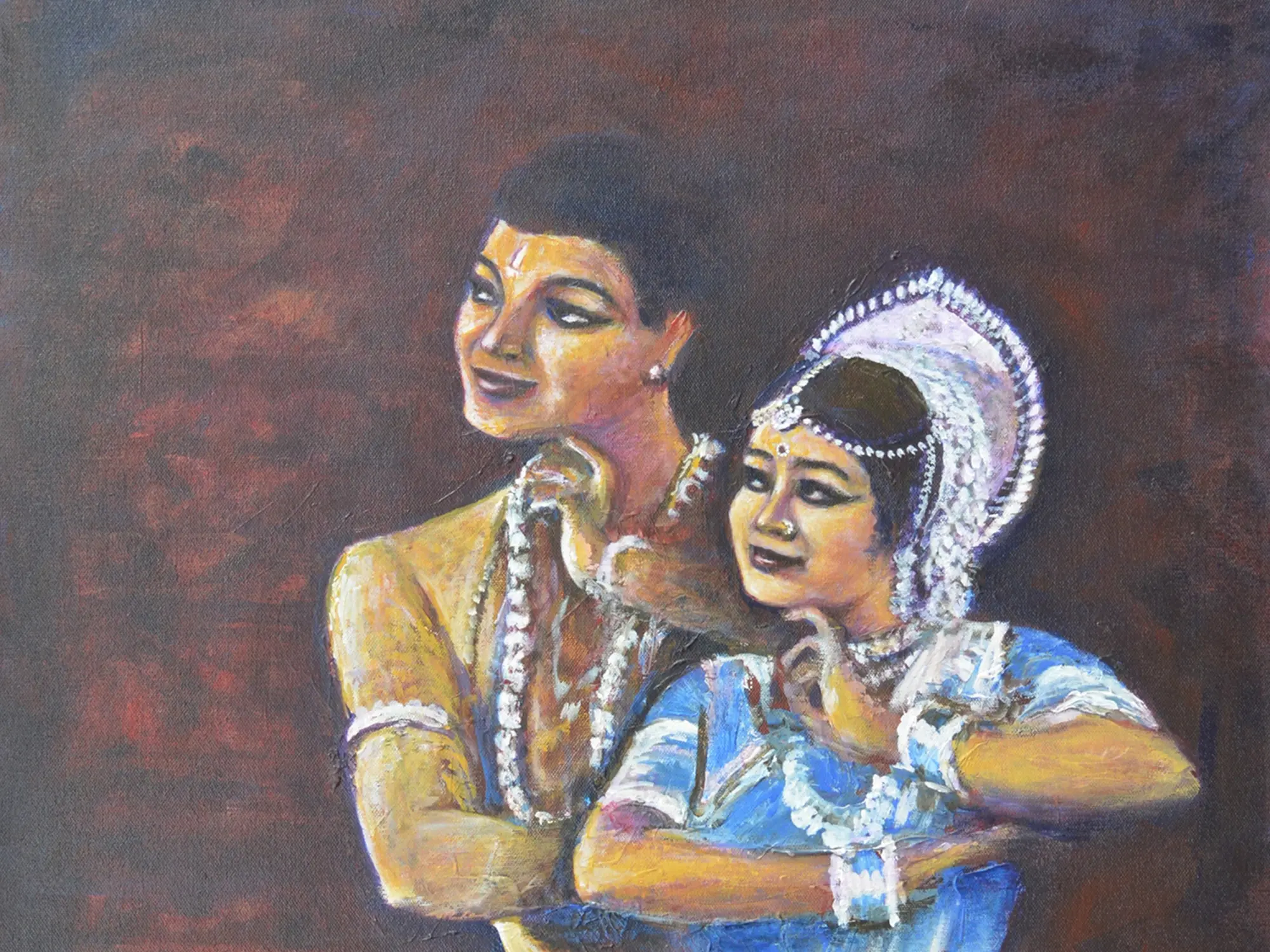 This artwork draws inspiration from the rich tapestry of Indian classical dance and the profound concept of *Sringara Rasa*, the aesthetic sentiment of love, beauty, and eroticism. It evokes the divine love stories often depicted in mythology and dance forms, such as those of Radha and Krishna. The poses and adornments are deeply rooted in ancient traditions, offering a glimpse into a cultural heritage that celebrates the sublime aspects of human connection.