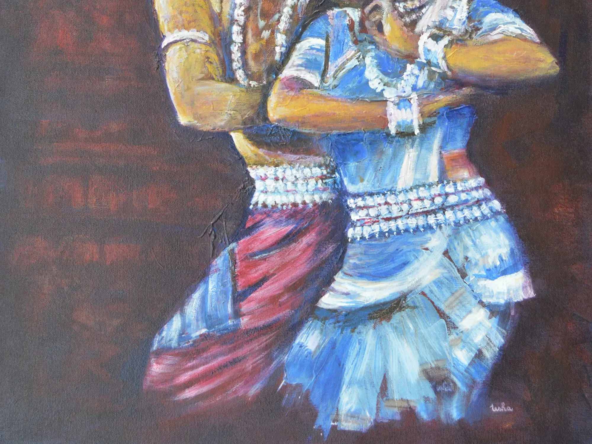 Crafted with passion and precision, this piece is rendered on high-quality canvas using vibrant acrylic paints. The artist’s hand is evident in every stroke, creating a textured visual appeal that draws the viewer deeper into the scene. You'll appreciate the careful layering and nuanced color blending that brings the figures to life with remarkable depth and luminosity.