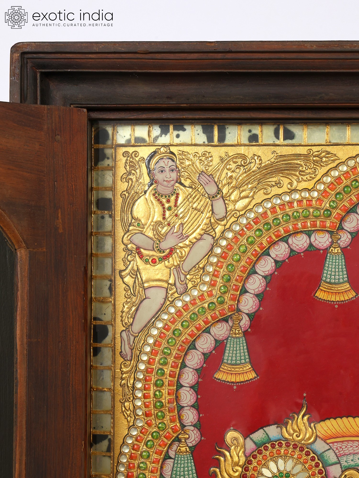 Standing Lord Vishnu | Traditional Tanjore Painting with Ornate Door Frame | 24 Karat Gold