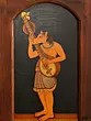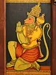 Bhakt Hanuman Holding Lord Vishnu | Semicircle Shape Tanjore Painting with Vintage Teakwood Frame