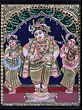 Behold the enchanting depiction of Lord Krishna, the divine flutist, surrounded by musical Gopikas in our Tanjore painting. Traditional colors and 24K gold embellishments breathe life into this timeless art, harmoniously encased in a Teakwood frame. Immerse yourself in the melody of Krishna's flute and the joy of the Gopikas as they harmonize to his tunes. This handmade art captures the essence of love, music, and devotion, inviting you to explore the profound beauty of Krishna's divine presence.