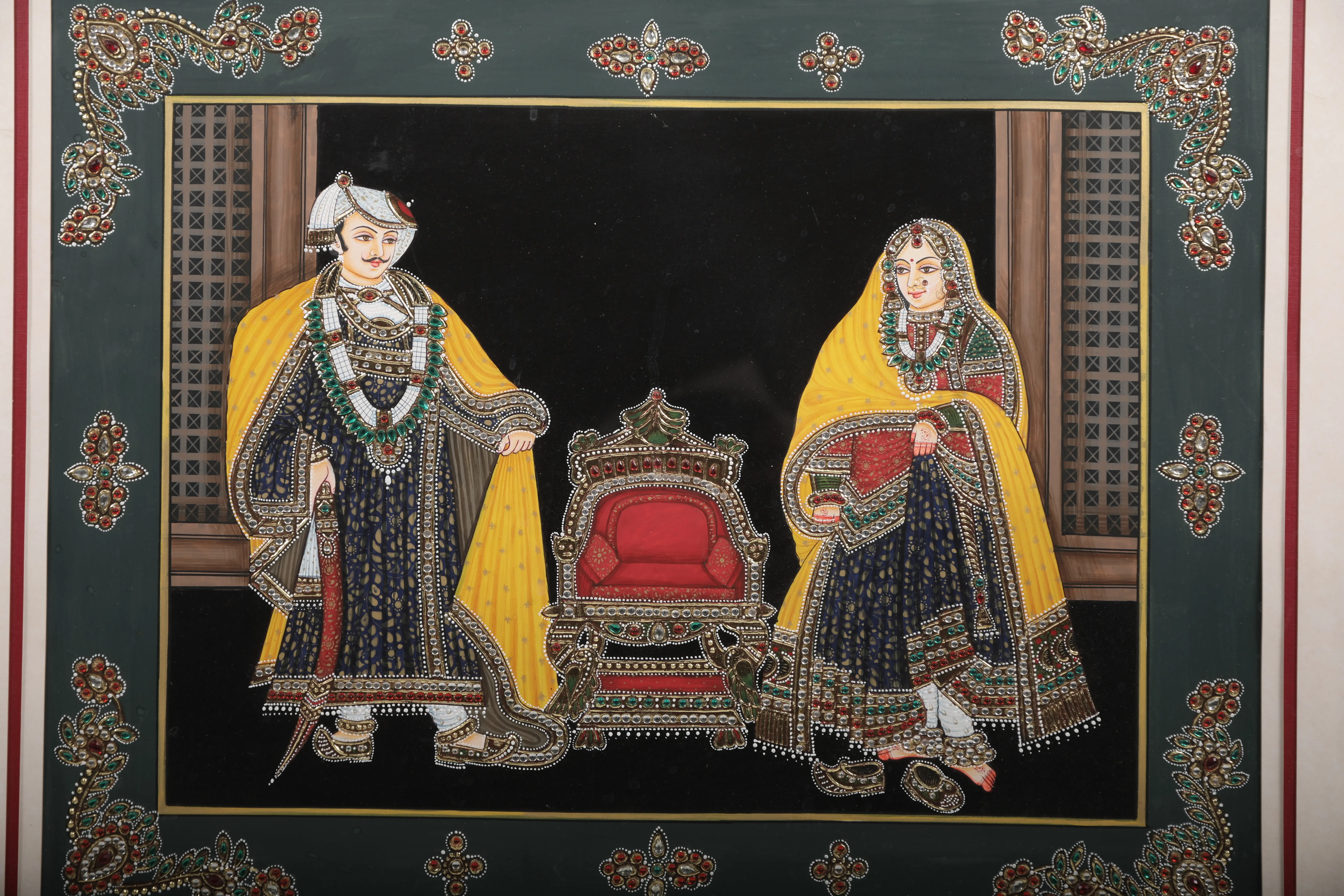 King and Queen Eating in Garden | Phad Painting by Kalyan Joshi