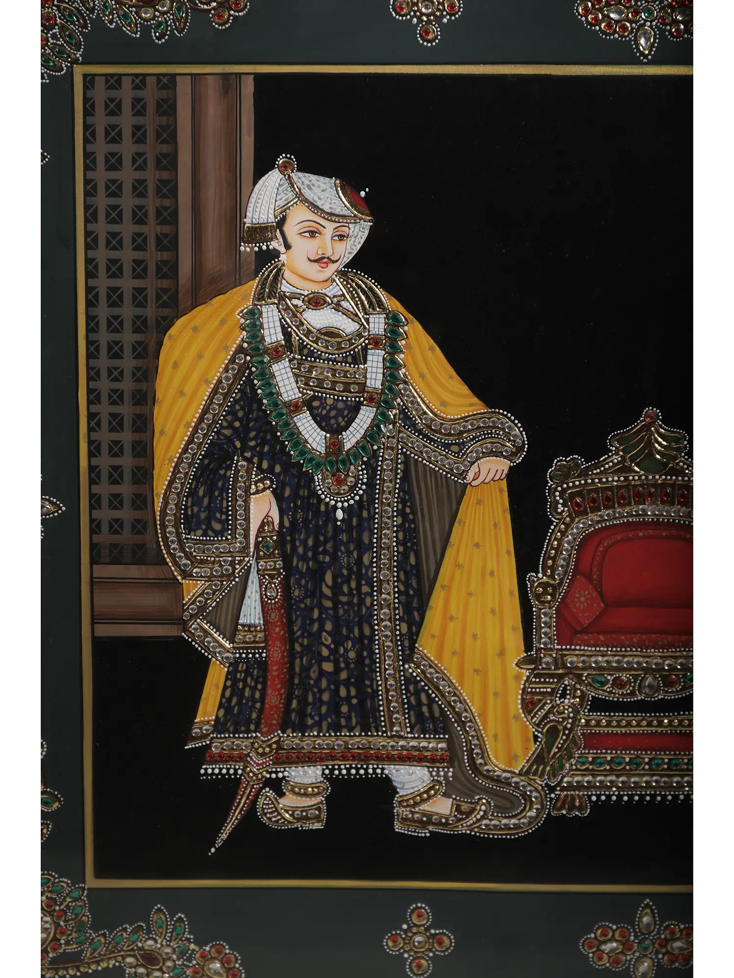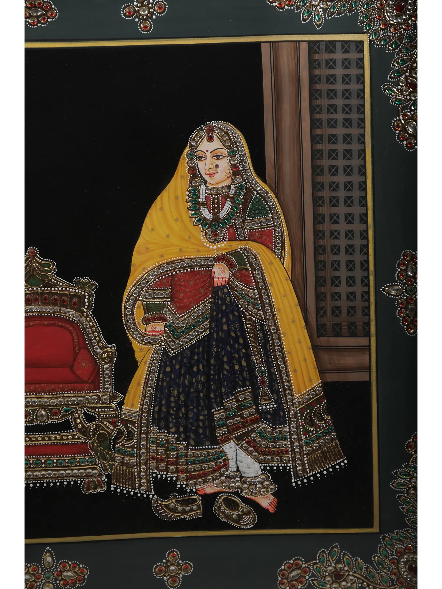 King and Queen on Swing | Colourful Traditional Art | Painting by Kalyan Joshi