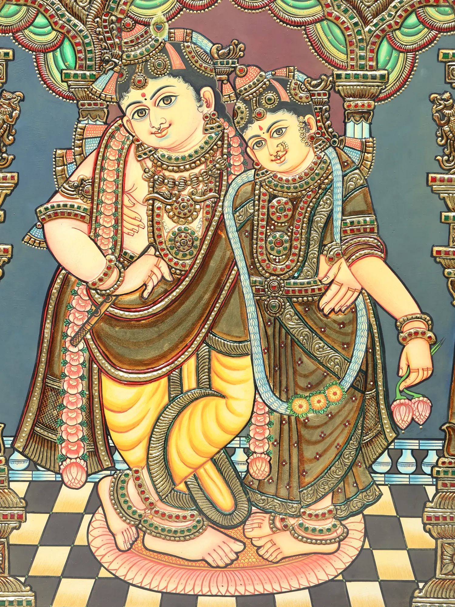 Goddess Andal | Framed Tanjore Painting with 24 Karat Gold Work
