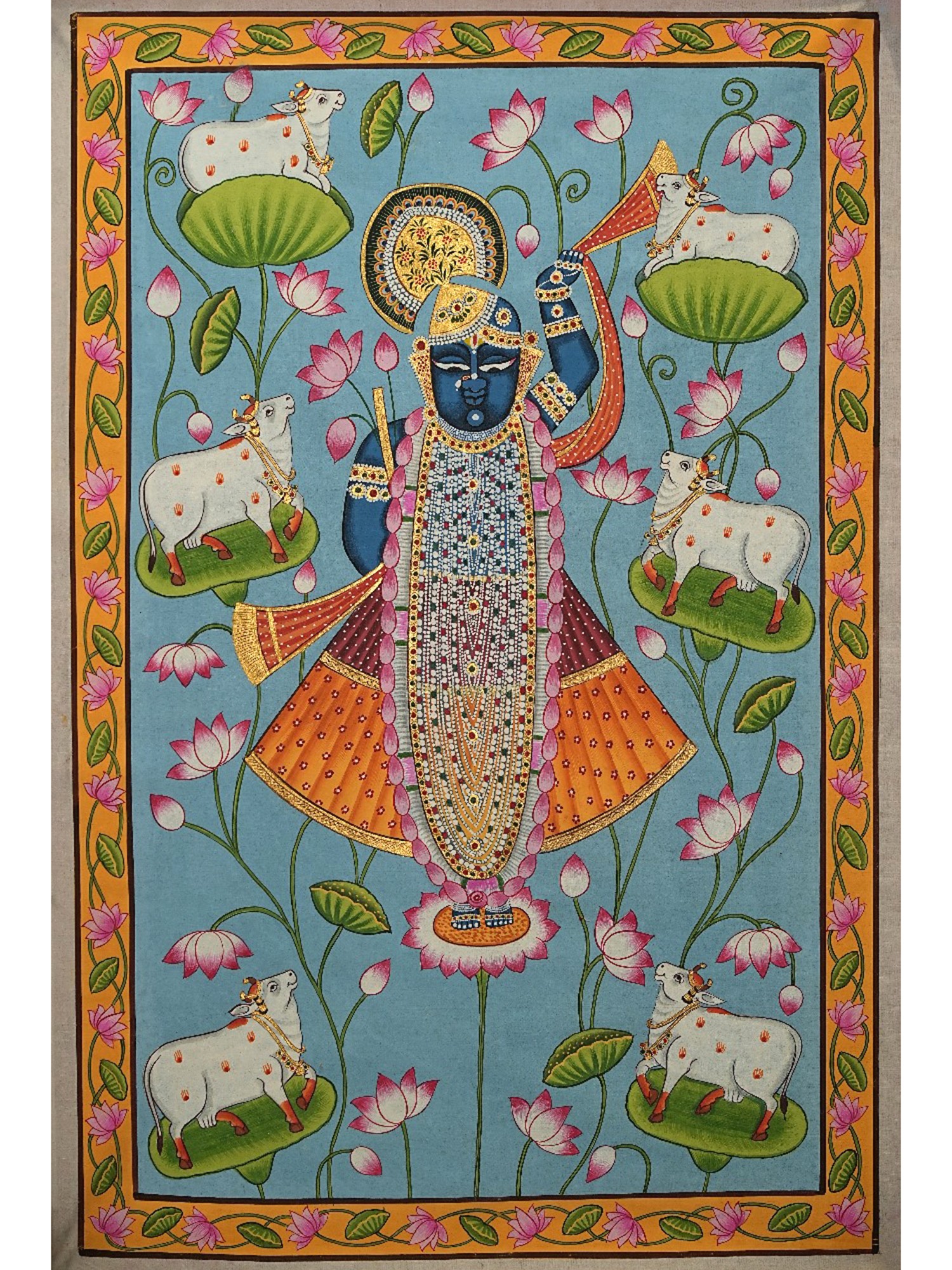 Divine Lord Shrinathji | Pichwai Painting on Cotton | by Narendra