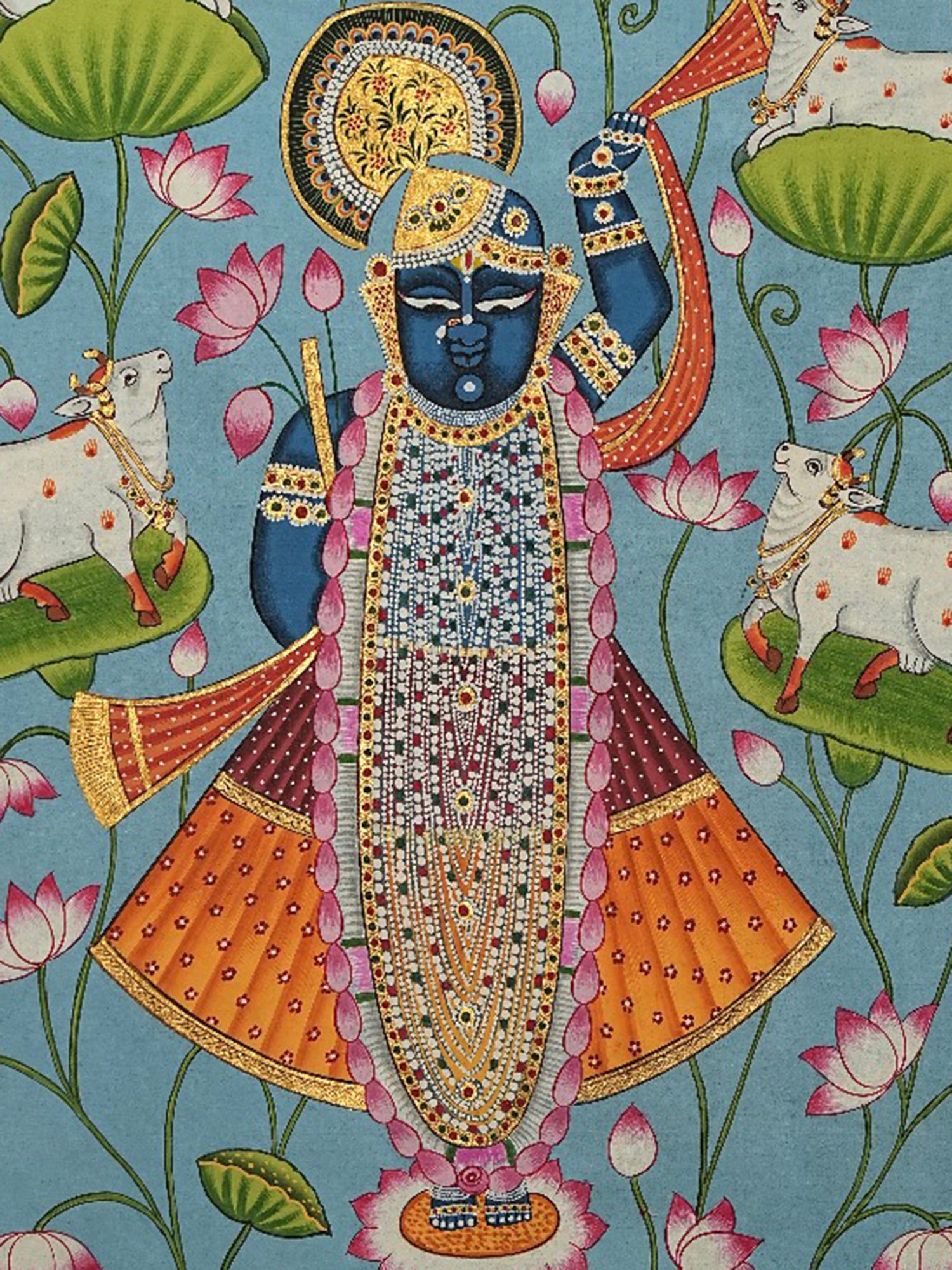 Lord Krishna As Shrinathji Pichwai Painting | Natural Color On Cloth | By Dheeraj Munot