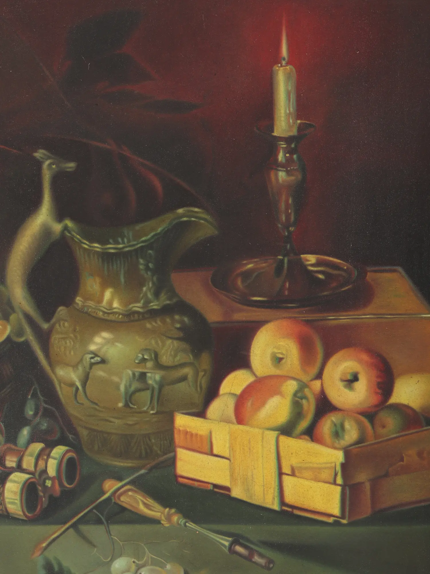 Here in this painting a thick, paste-like paint may be employed to depict lemon peel, thin glazes were more suited for representing smooth silk or porcelain. The most significant part of this painting is the dim candle light that captures the attention despite the light falling on a significant part of the painting. This painting is a perfect piece for collection and might become a treasured art piece through time.