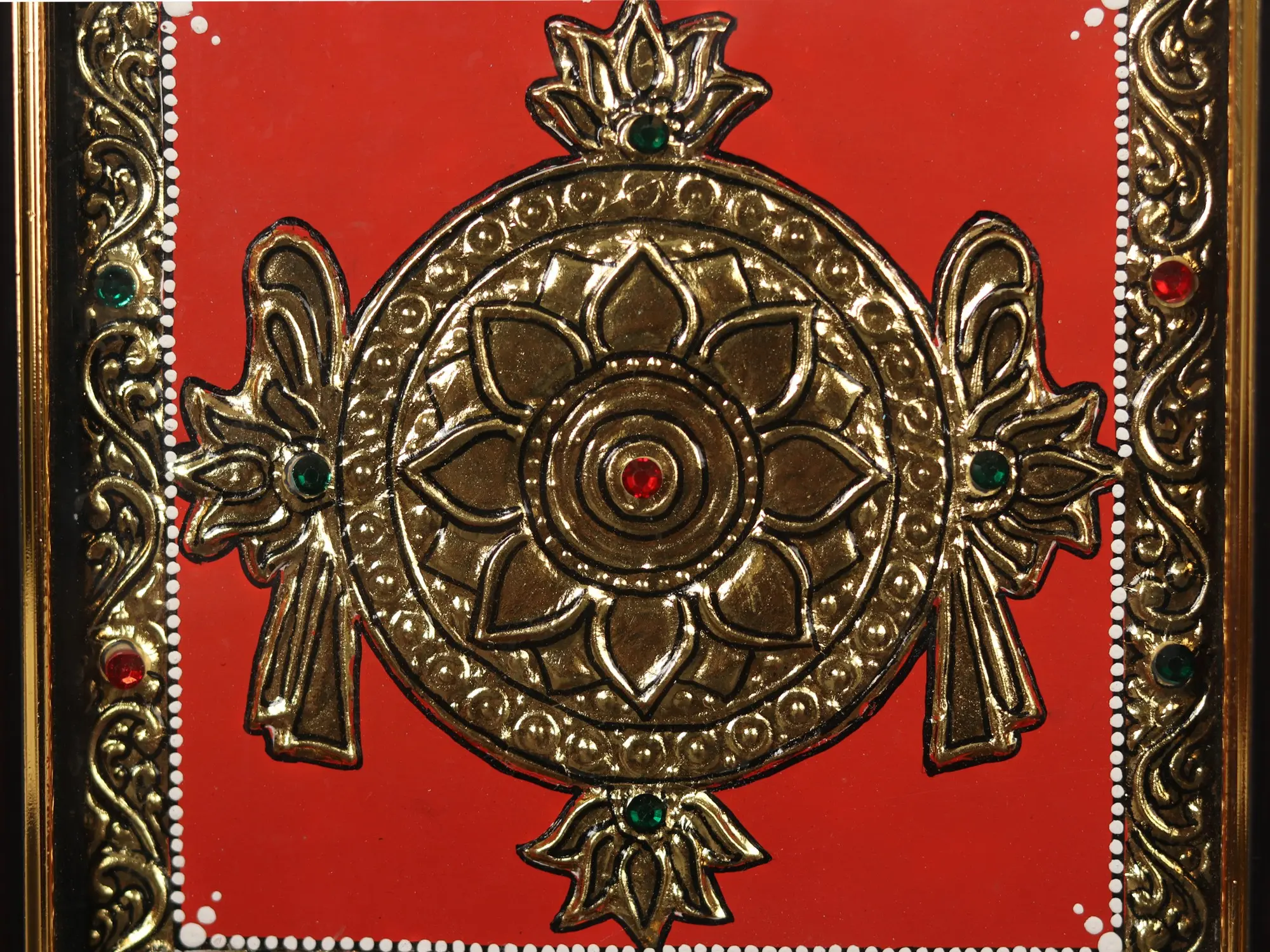sharp edges and brilliant light; it is also known as the wheel of time. This Tanjore painting