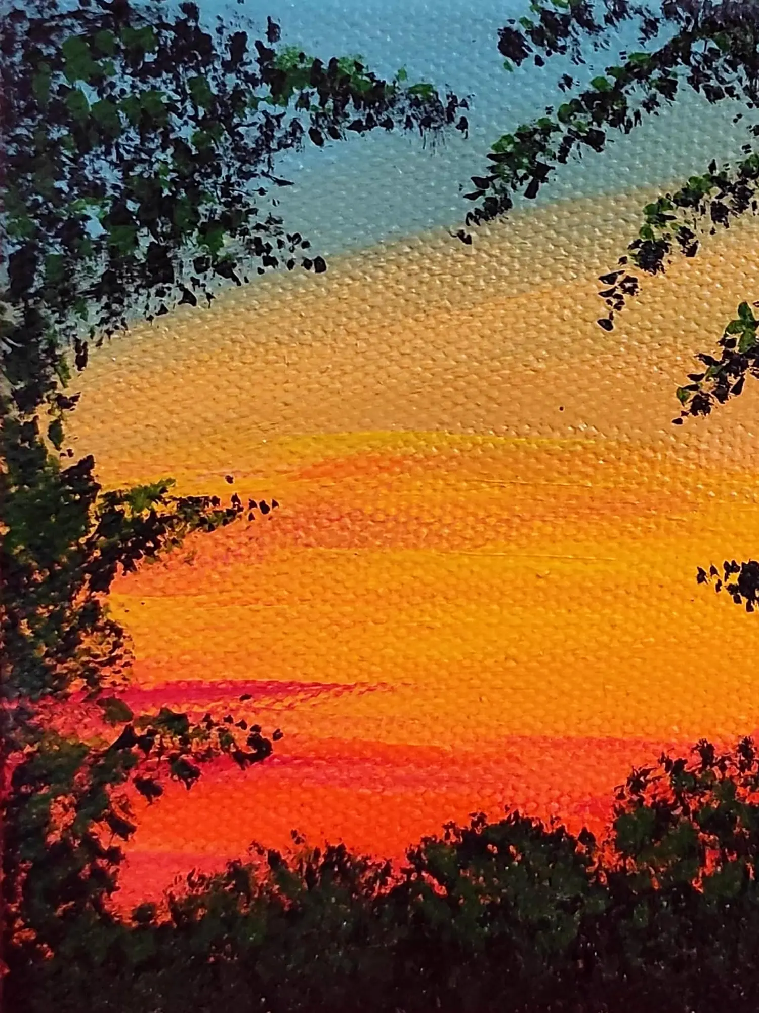 Shraddha Shirsat's Acrylic on Stretched Canvas masterfully captures the breathtaking spectacle of a sunset, unveiling nature's palette in a three-layered symphony. The initial layer bathes the sky in serene blue, setting the stage for the ensuing drama. As the eye travels, the canvas transforms with the warm embrace of orange and red hues, mirroring the sun's descent.