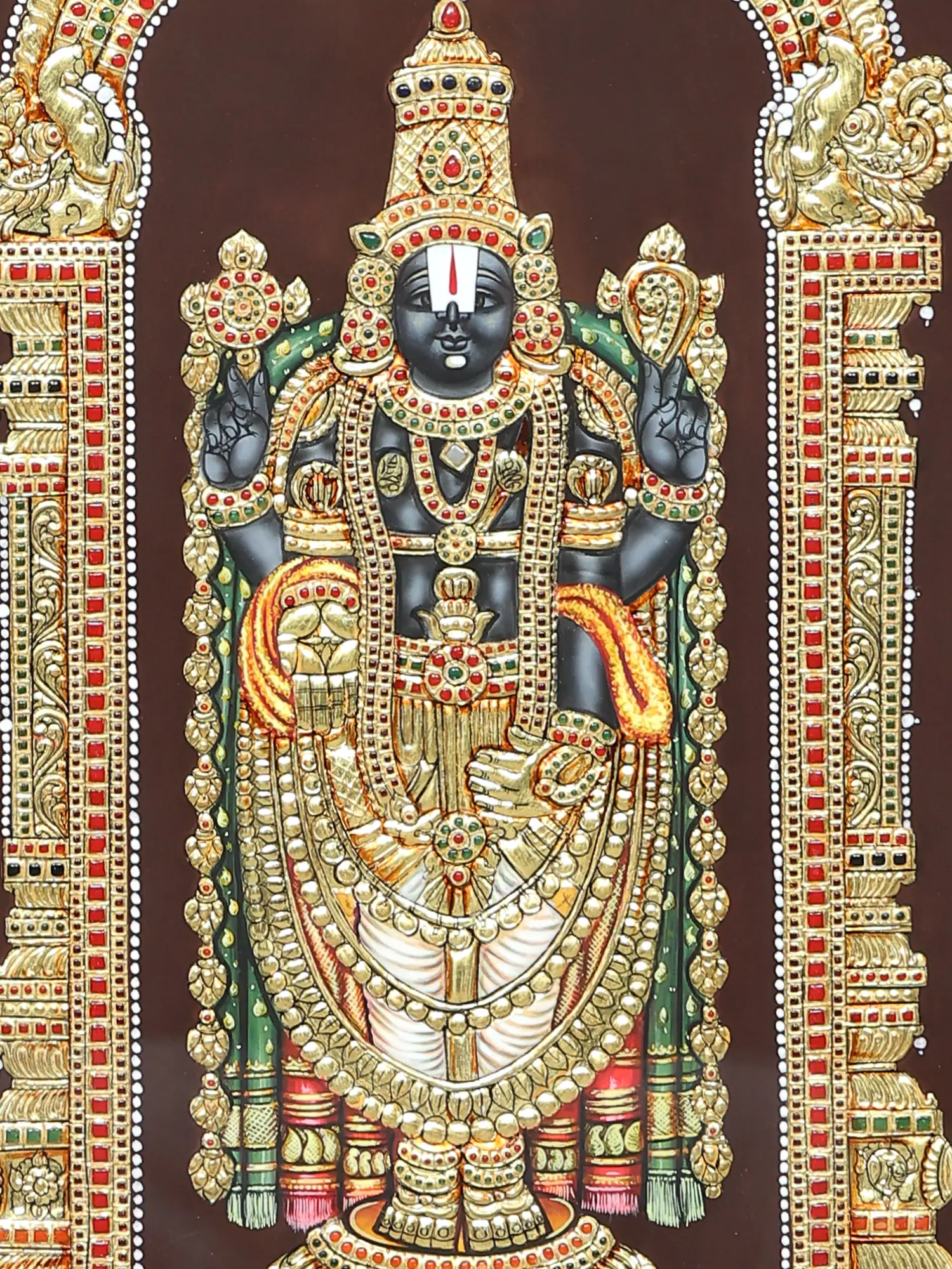 Tirupati Balaji (Venkateshvara) Framed Tanjore Painting | 24 Karat Gold Work