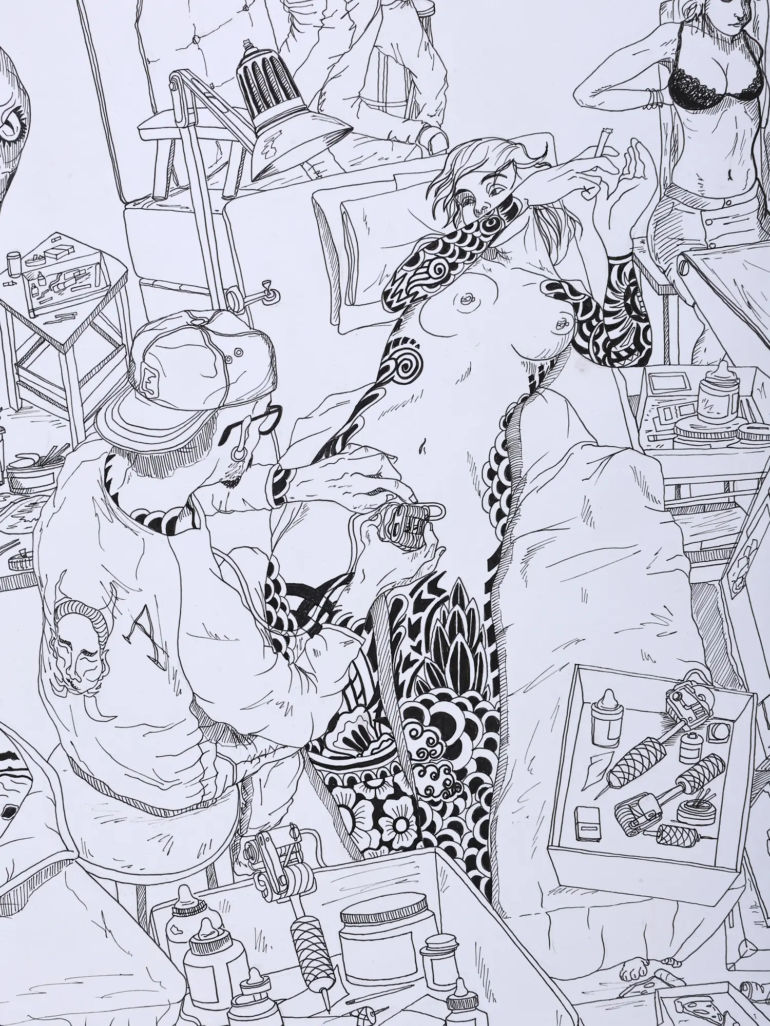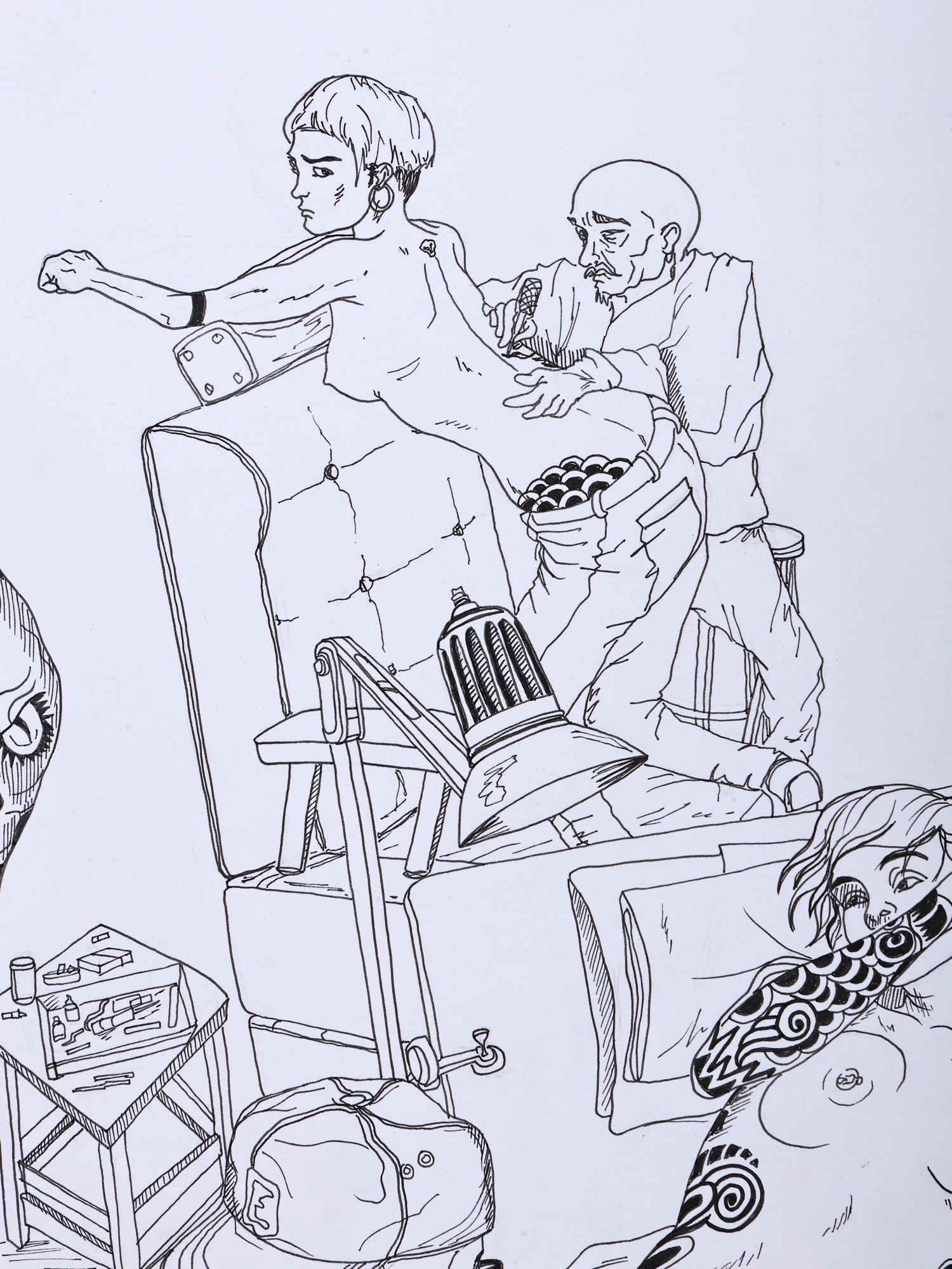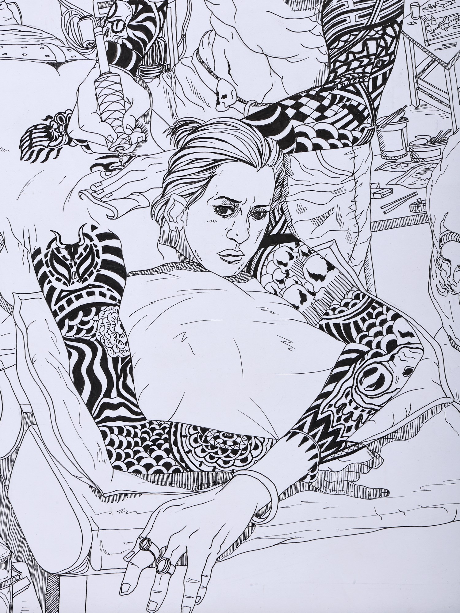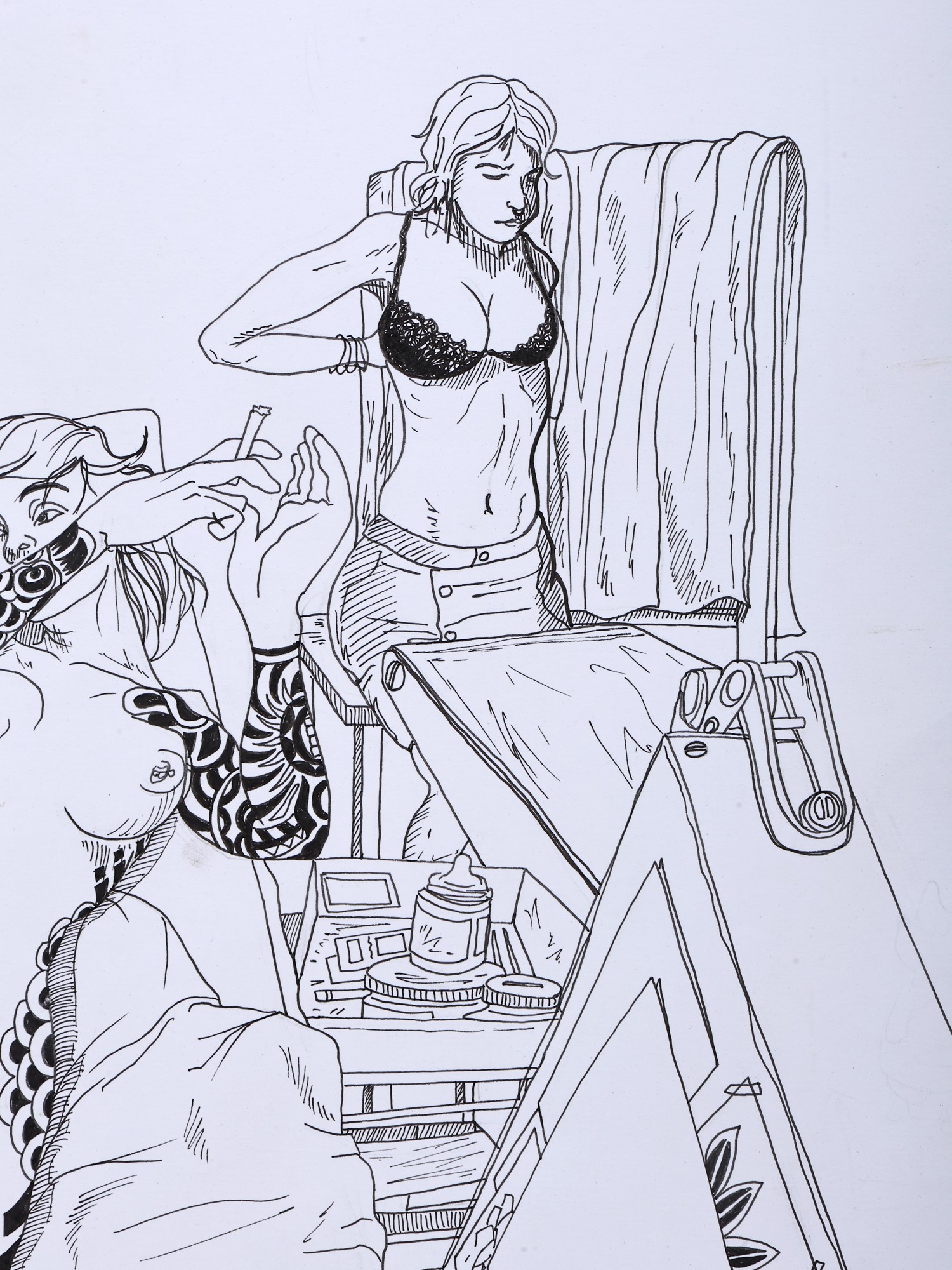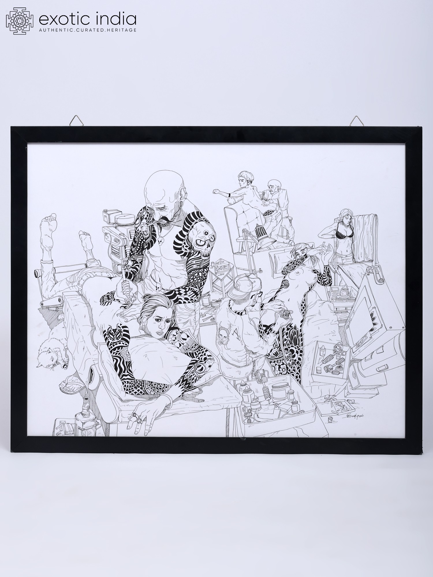 Beautiful Couple - Line Art | Pen On Paper And Mixed Media | With Frame | By Ashish Agarwal