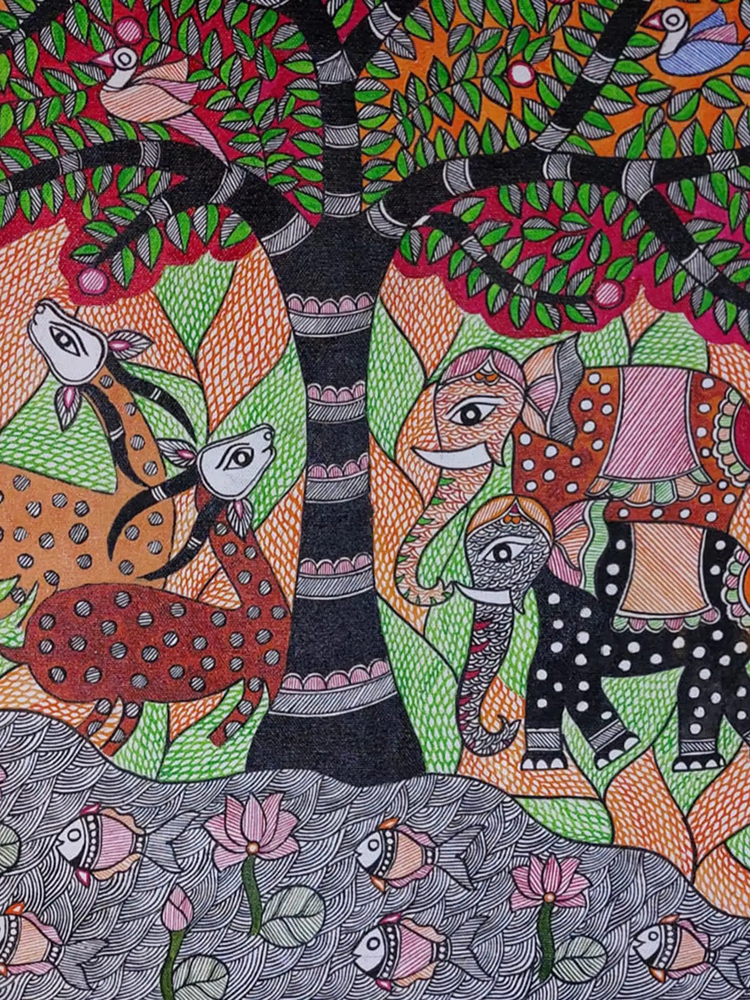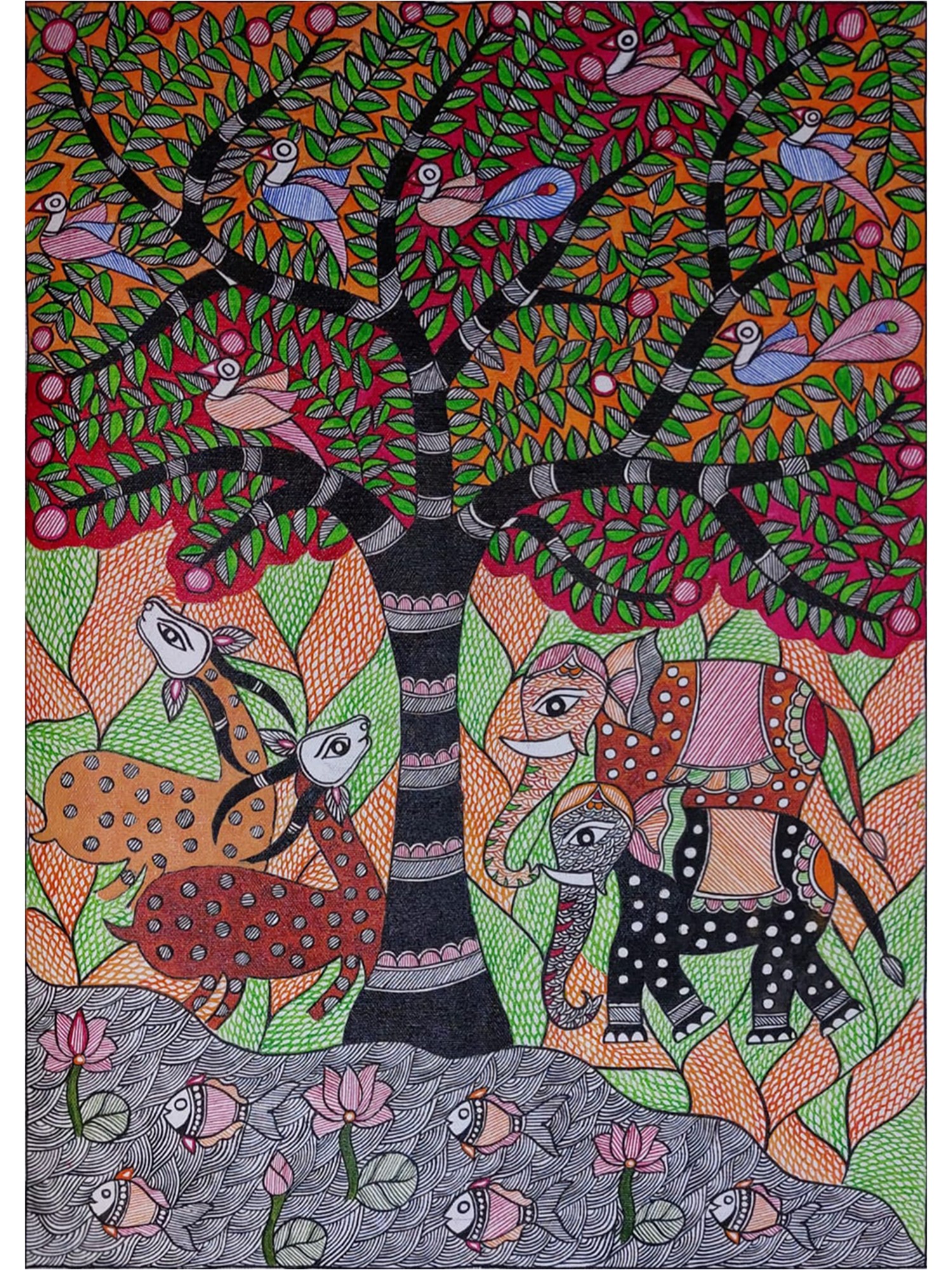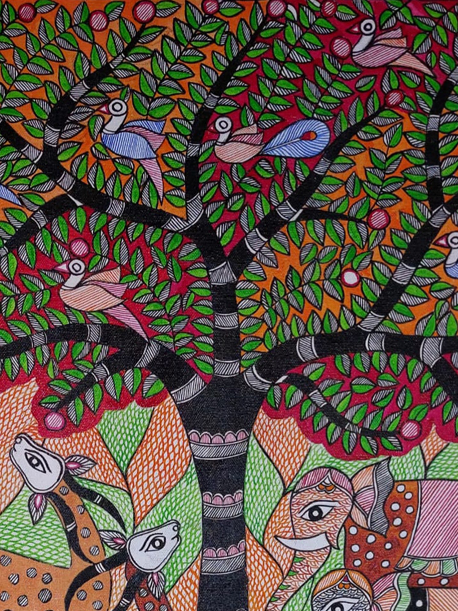 The Sun - Mithila Art | Acrylic on Canvas | By Rina Patwa