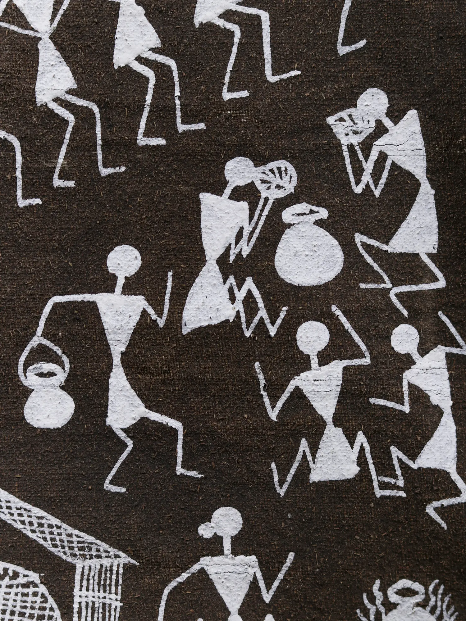 Showcases the signature minimalist figures and geometric patterns of Warli art.