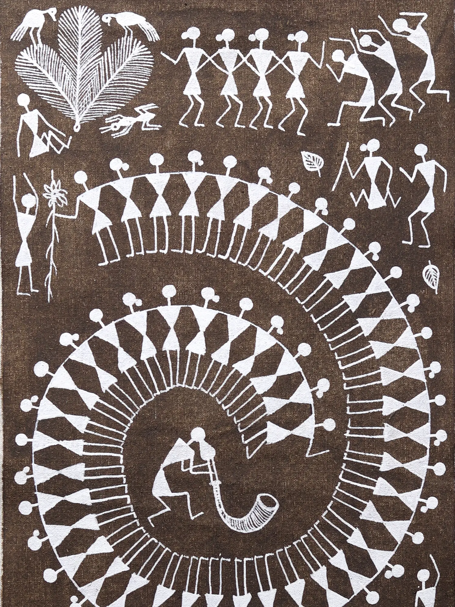 Celebrating with Tarpa Dance | Warli Art on Cotton