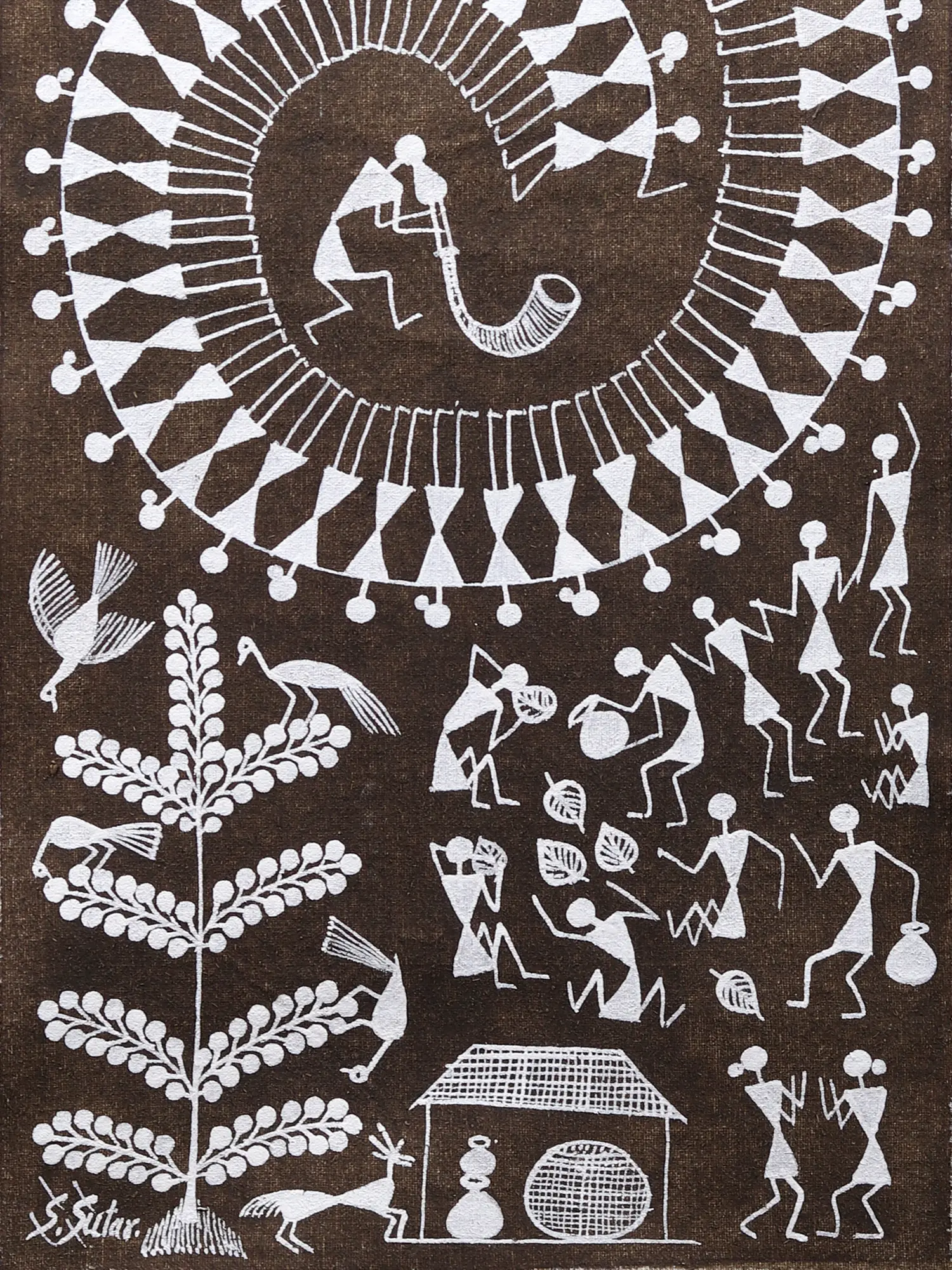 Sarvadev Warli Painting | Natural Color On Cotton Cloth | By Sanjay Balakrishna Parhad