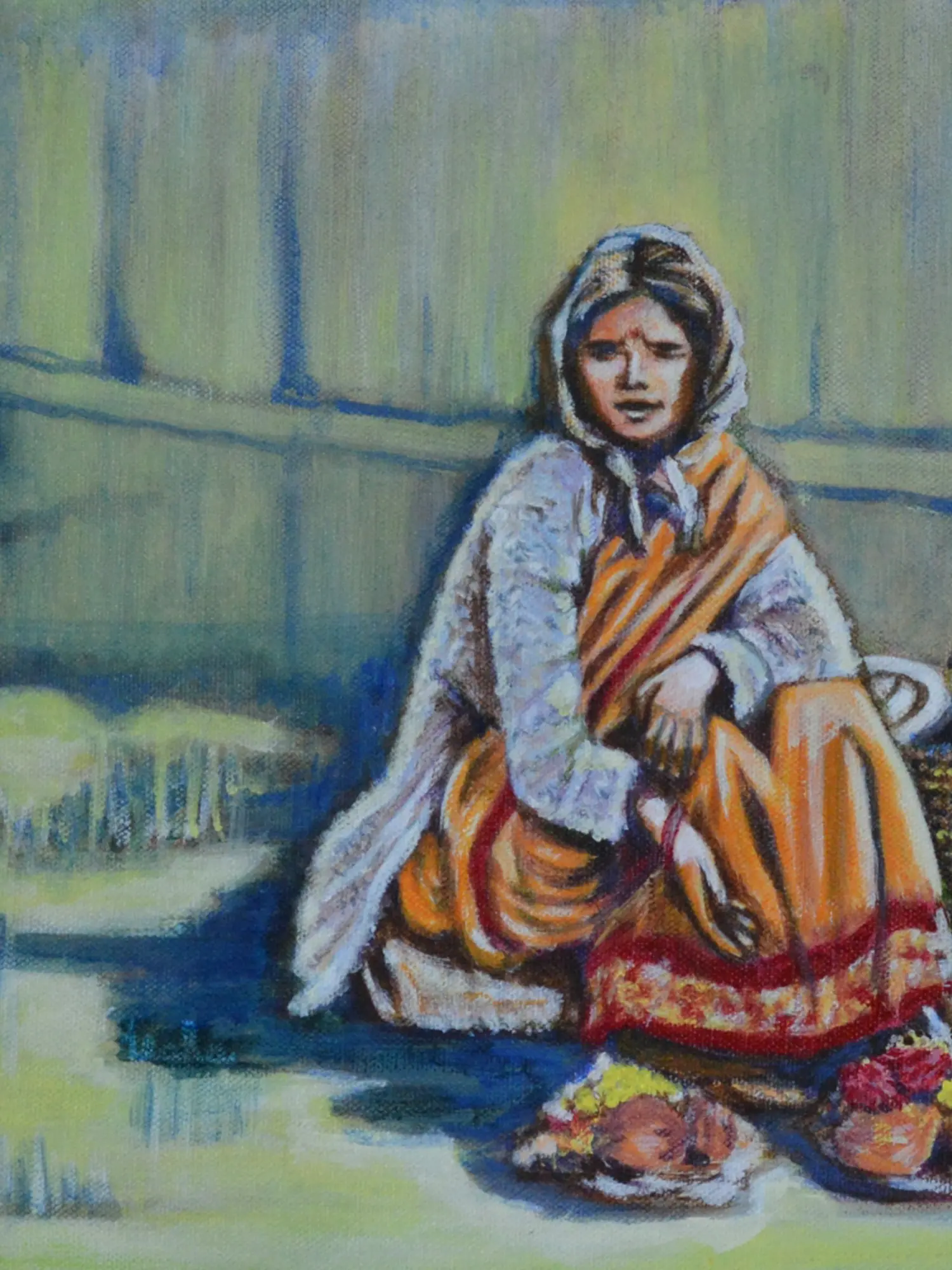 Templeside Vendor - Acrylic Painting | Acrylic On Canvas | By Usha Shantharam
