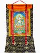 White Tara Seated Thangka with Avalokiteshvara and Green Tara
