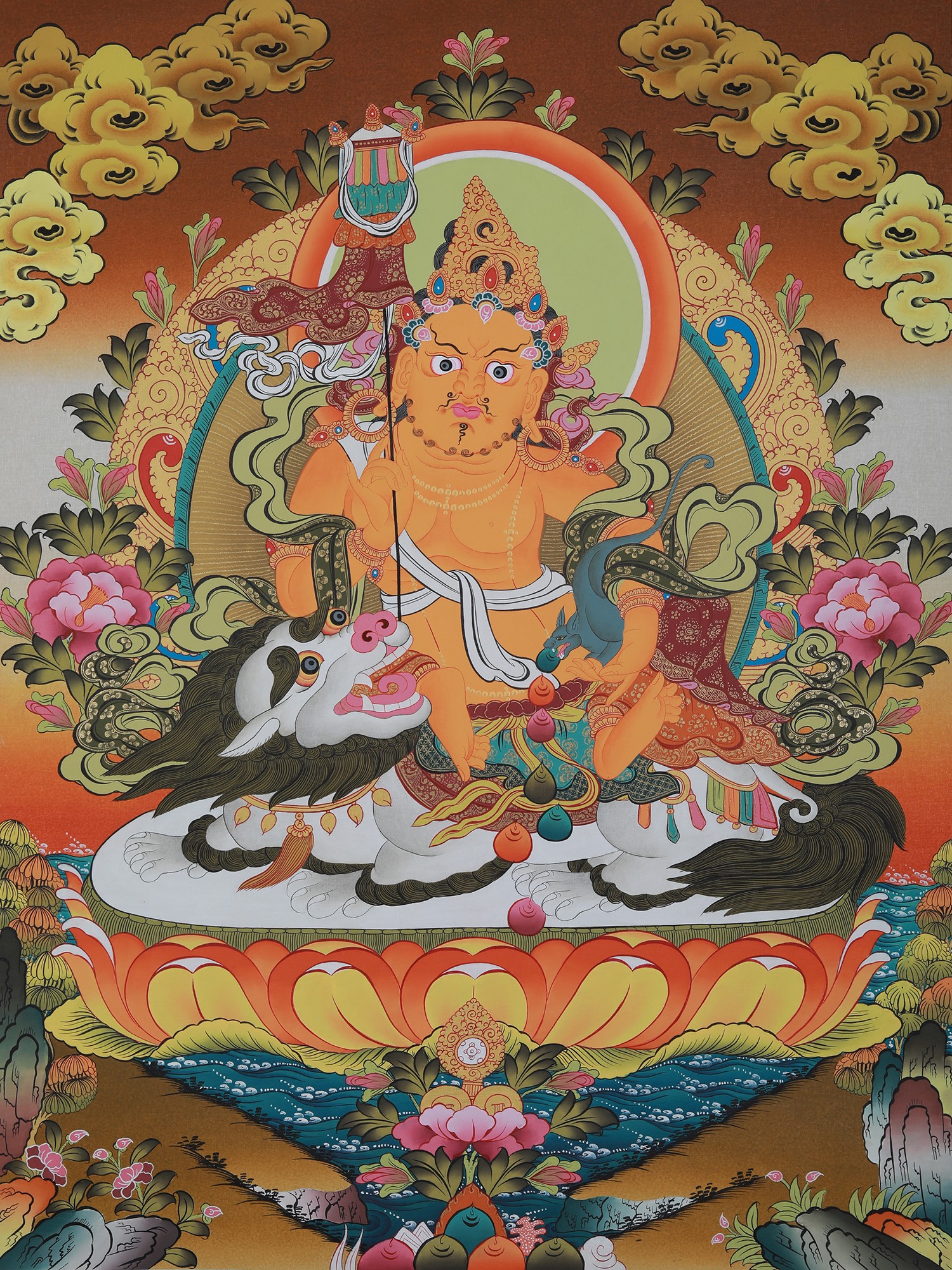 Kubera - The Buddhist Deity Of Wealth | Tibetan Brocadeless Thangka Painting