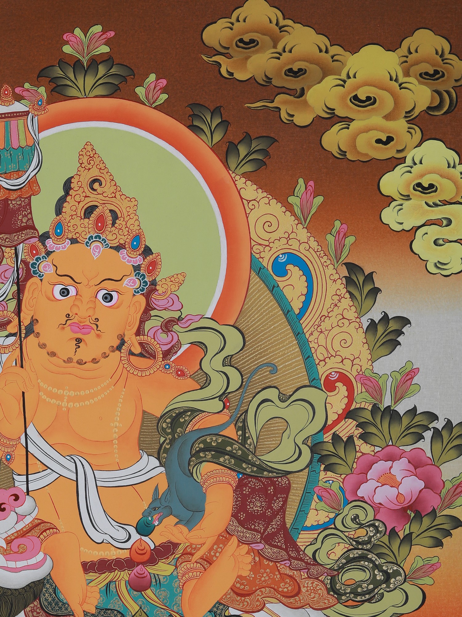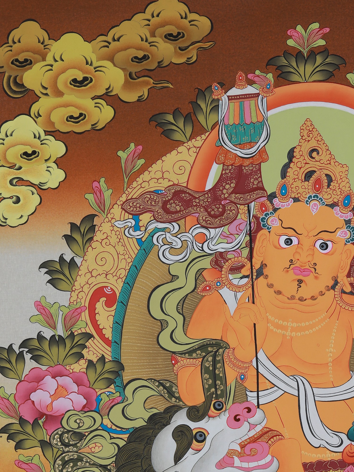 Superfine Tibetan Buddhist Deity Kubera - Brocadeless Thangka