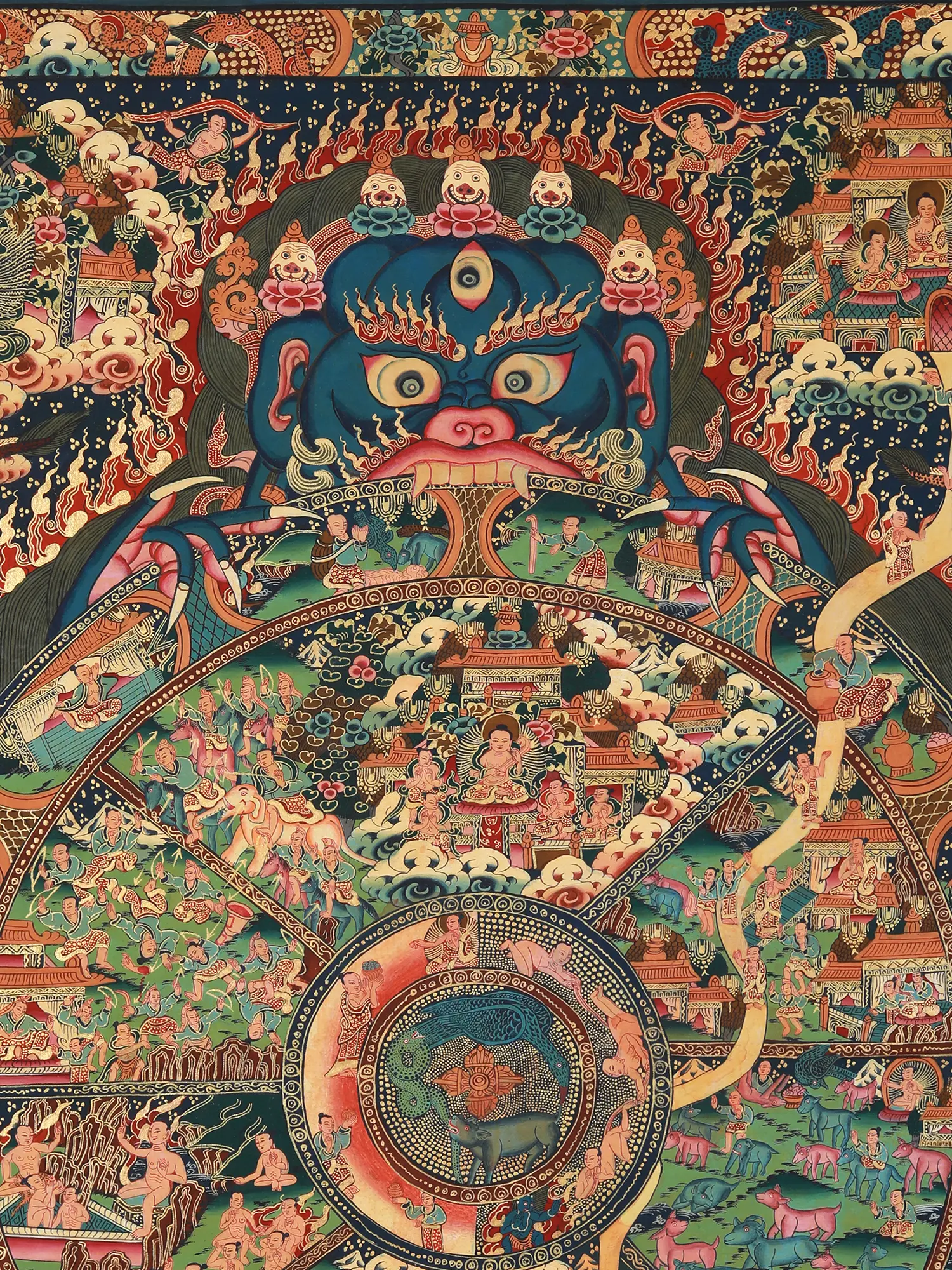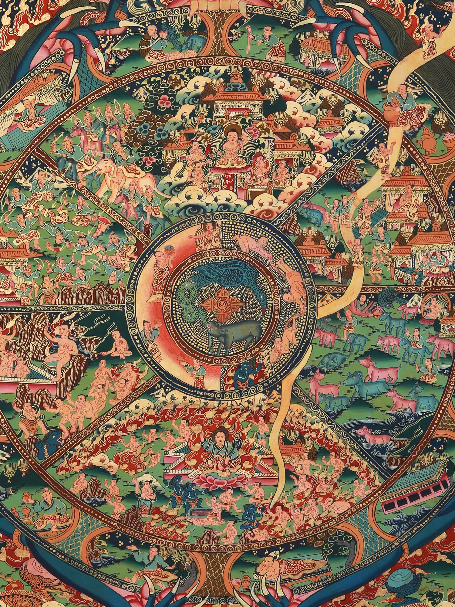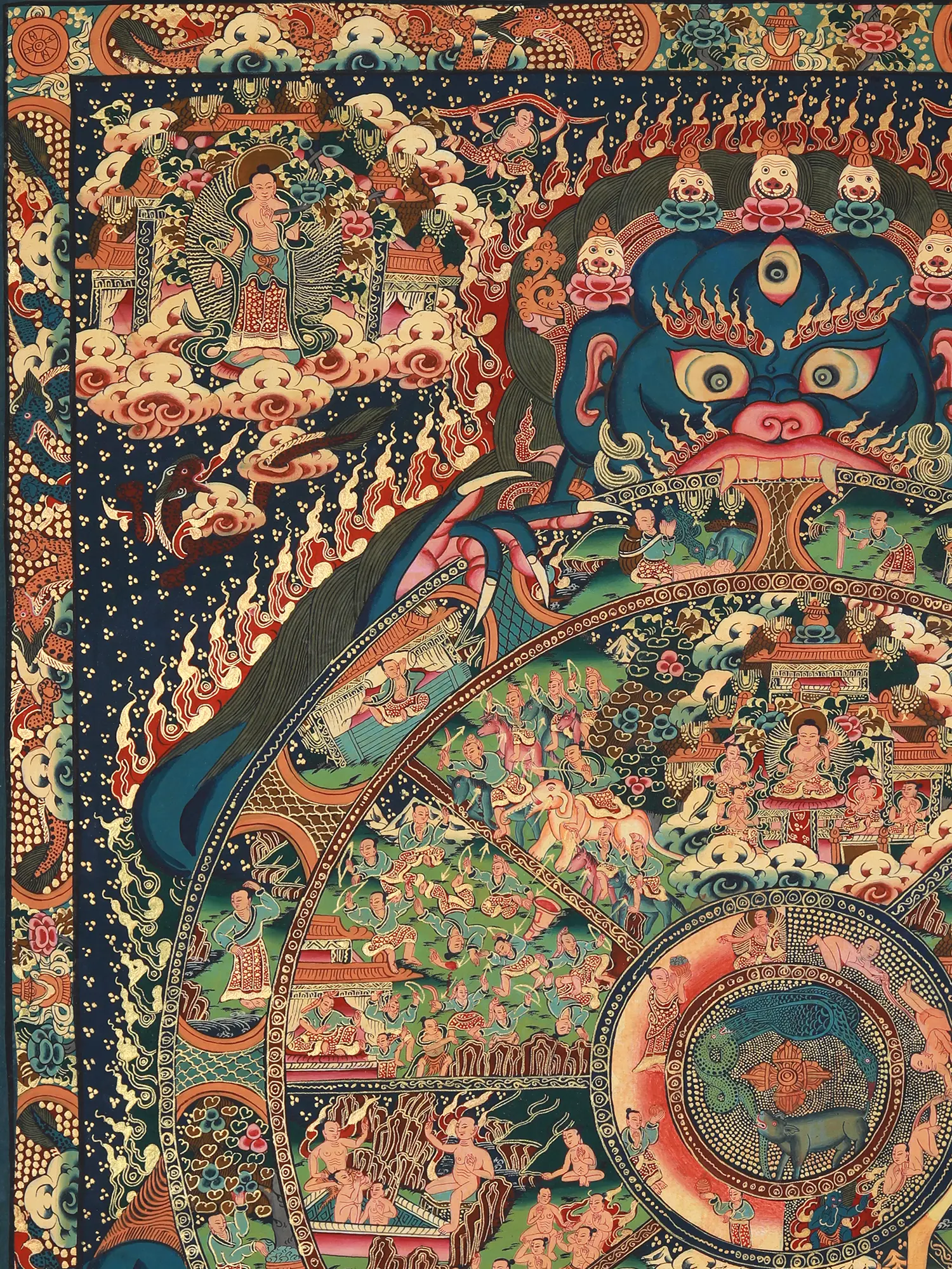 Tibetan Wheel of Life (Brocadeless Thangka)