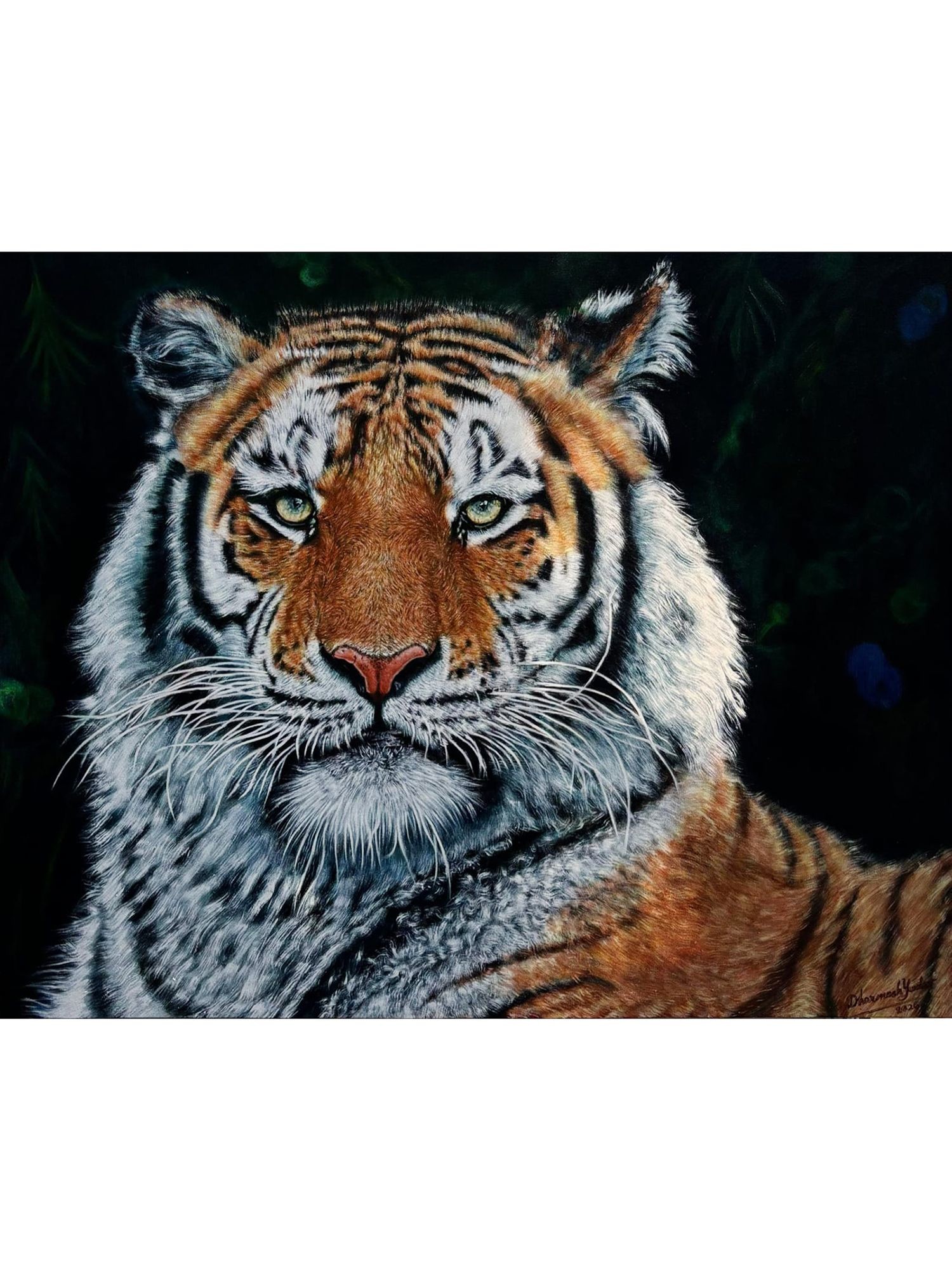 41" Wild Cat Painting with Vintage Wooden Frame | Wall Hanging