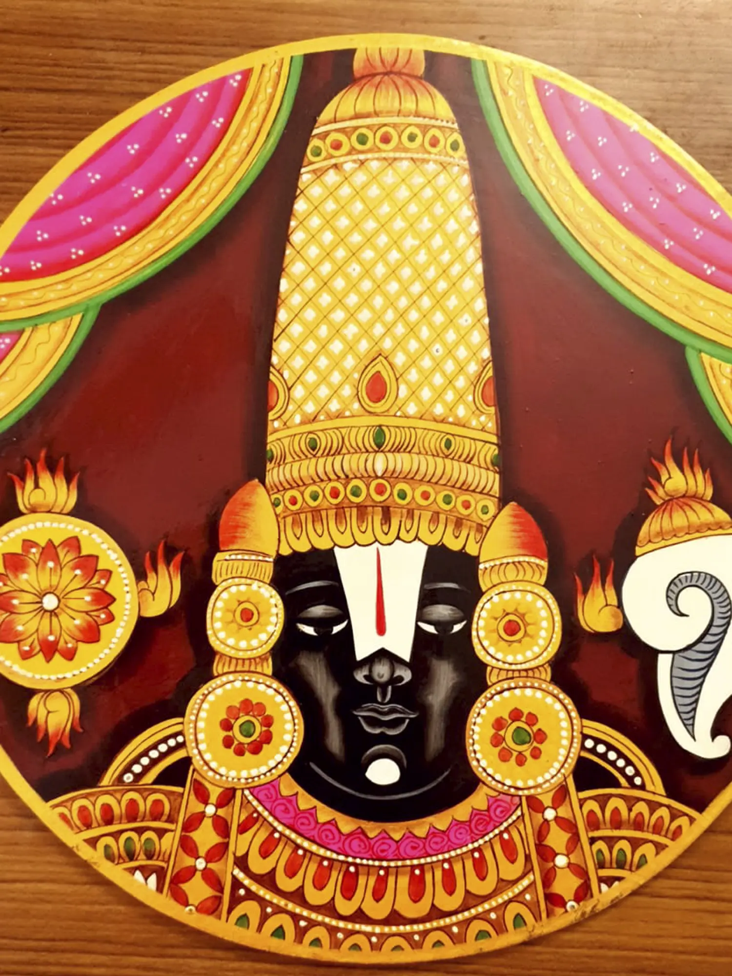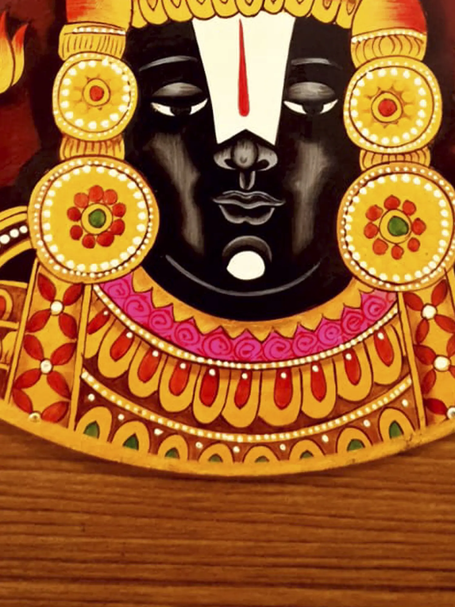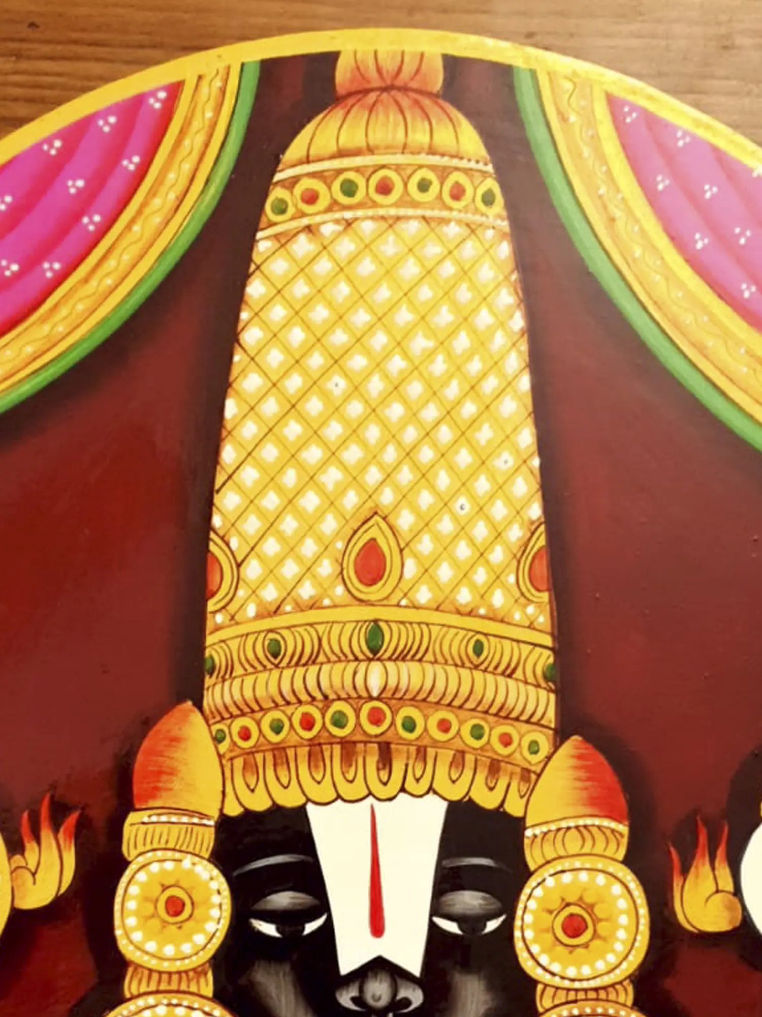 Bring the divine presence of Tirupati Balaji into your space with this crafted face painting on MDF wood. The artist's skillful strokes capture the serene countenance of Lord Balaji, radiating a sense of devotion. The choice of MDF wood adds a contemporary touch to the traditional subject, creating a harmonious blend of timeless spirituality and modern aesthetics. Let the sacred visage of Tirupati Balaji grace your surroundings, serving as a visual reminder of divine blessings and spiritual serenity.