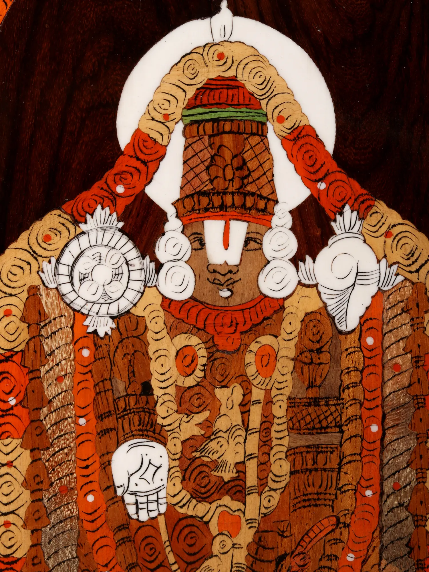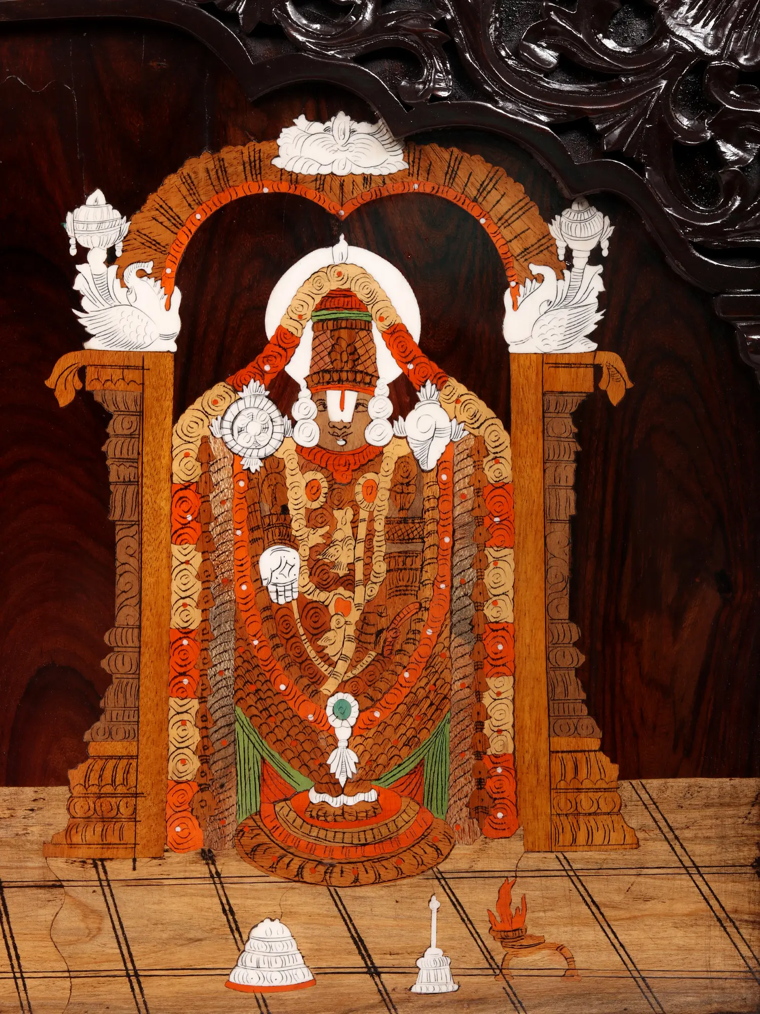 Tirupati Balaji (Lord Venkateshwara) with Padmavathi | Wood Panel with Inlay Work
