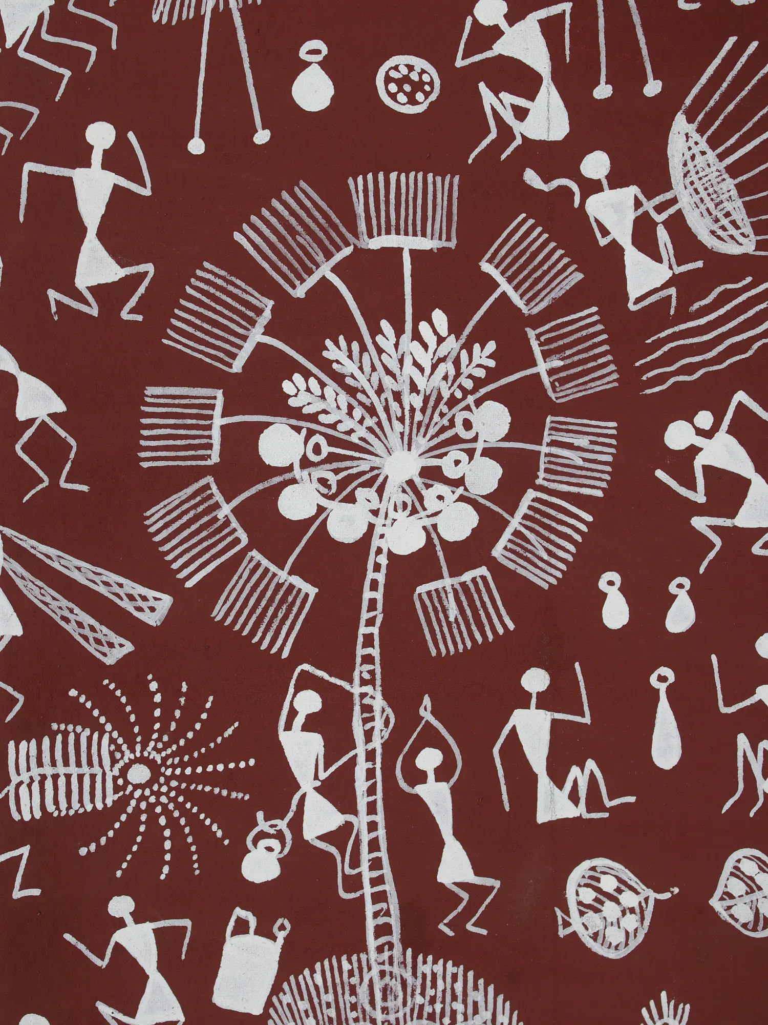Tree Of Life And Lifestyle Warli Painting | Natural Color On Cotton Cloth | By Sanjay Balakrishna Parhad