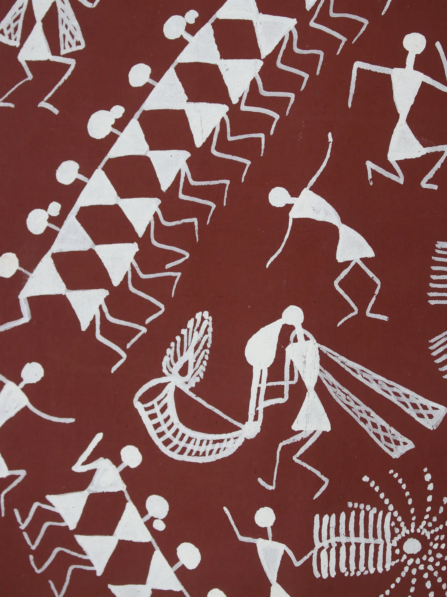 Fishing Net And Fisherman Warli Painting | Natural Color On Cotton Cloth | By Sanjay Balakrishna Prasad