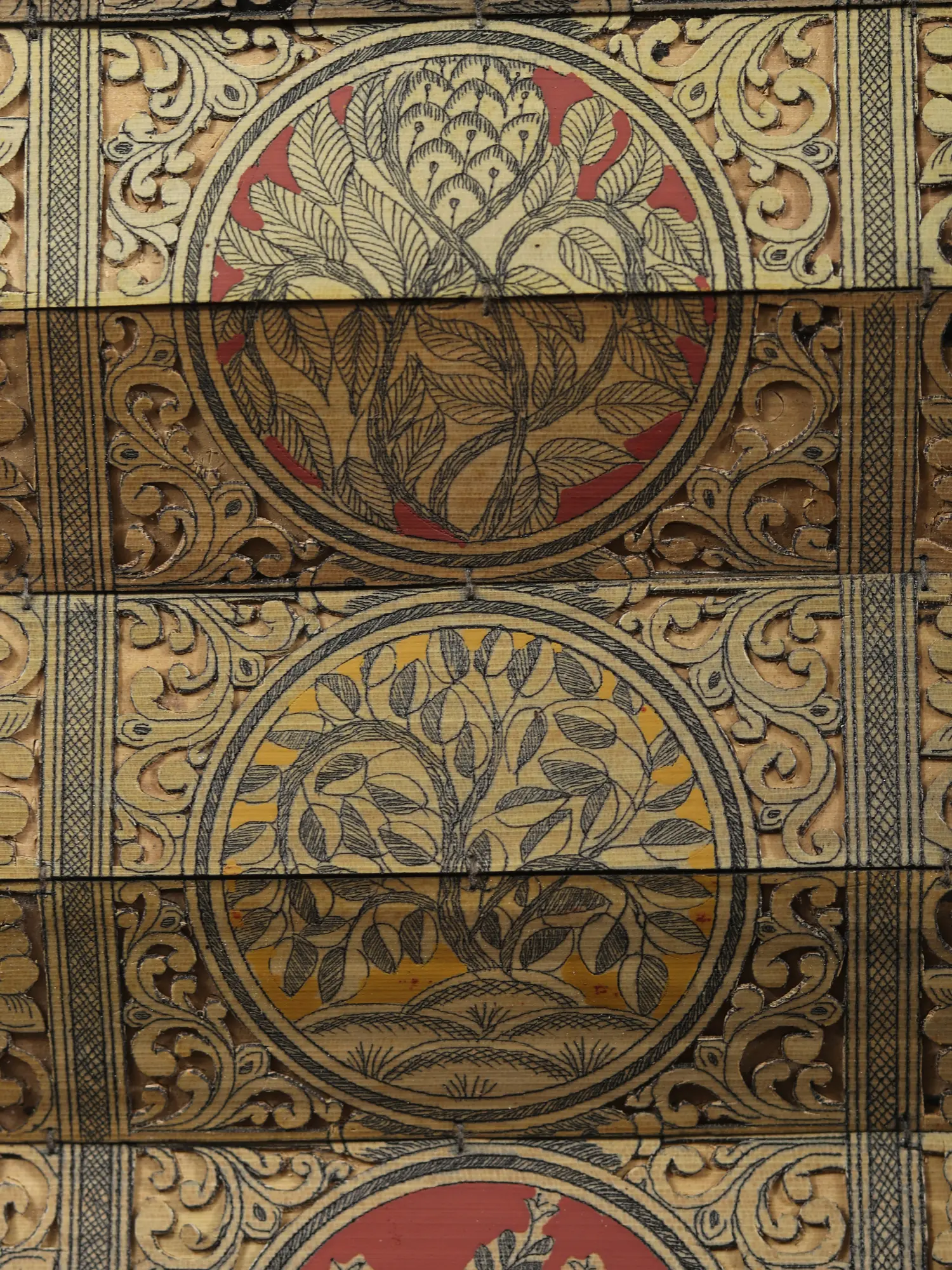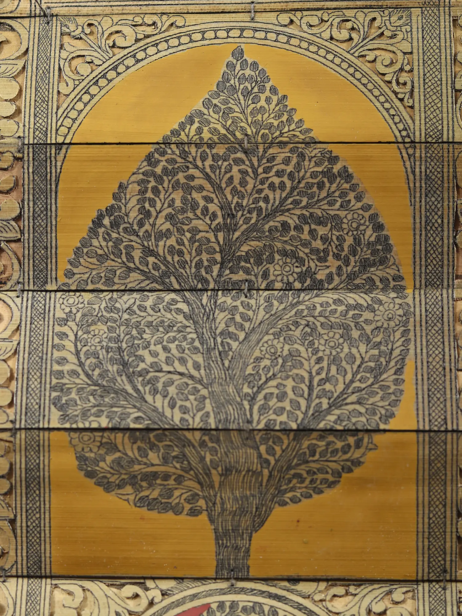 palm leaves. This traditional Indian art form involves intricate detailing on