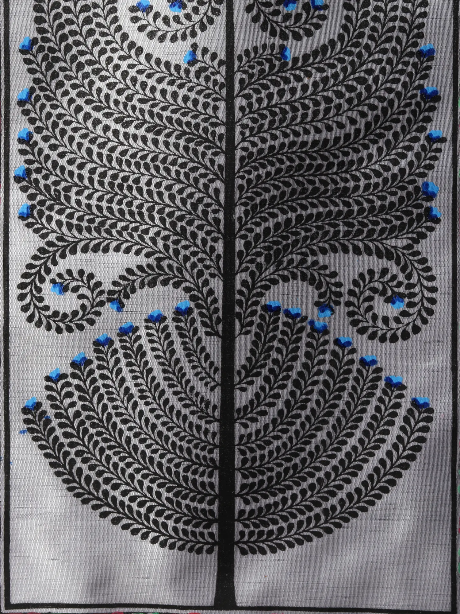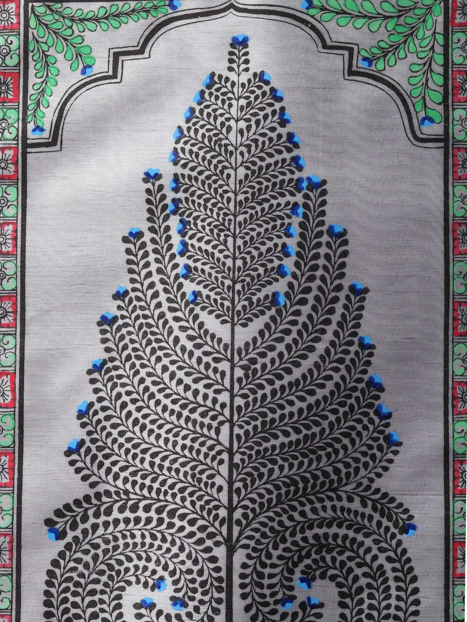 Trees hold a revered status across cultures, symbolizing life, wisdom, and interconnectedness. They are often regarded as sacred beings, embodying strength, resilience, and nourishment. This Tree of Life watercolor on silk, crafted in the traditional Pattachitra style, pays homage to the revered status of trees.