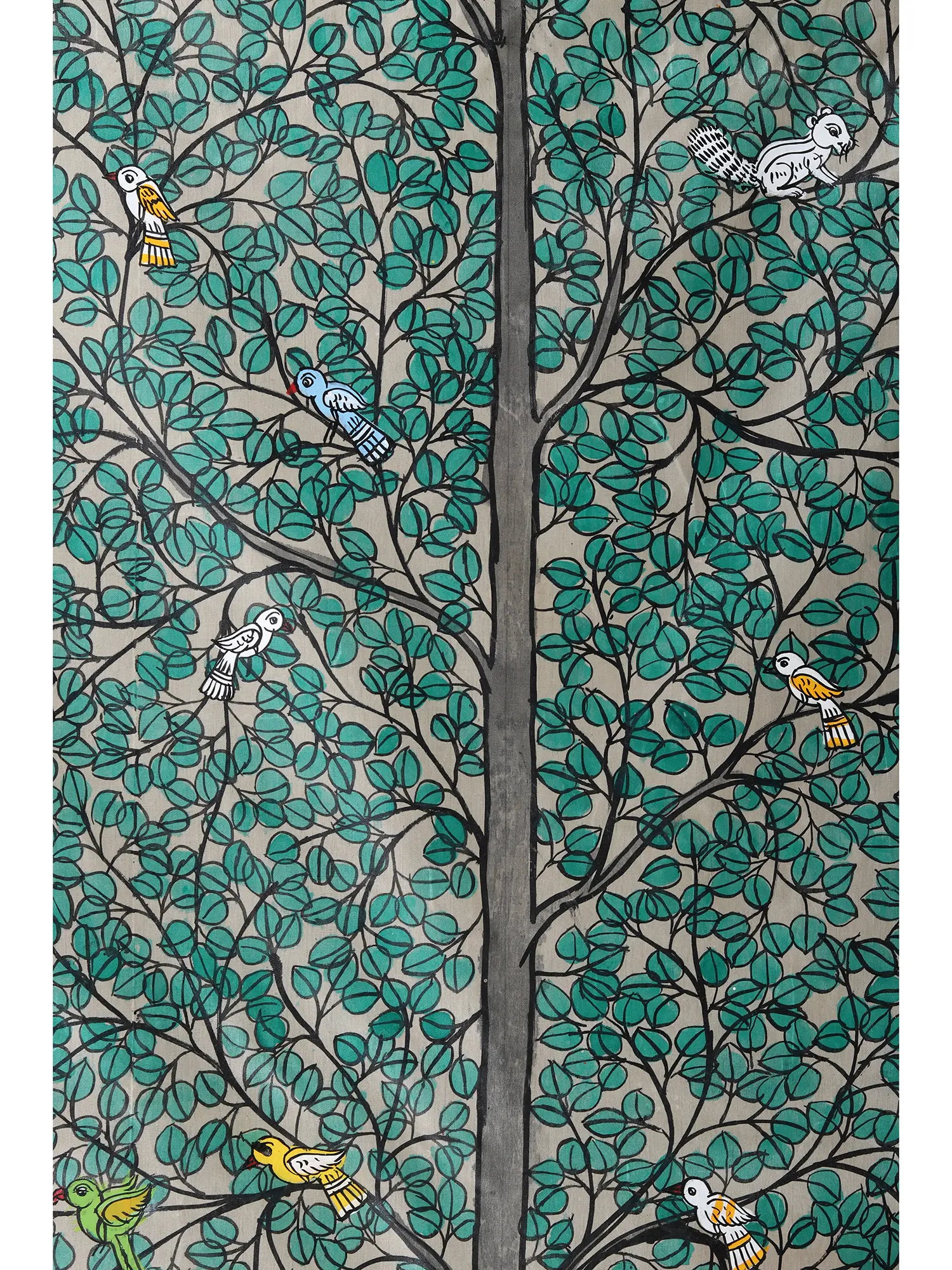 Phulkari Dupatta from Punjab with Multicolor Thread Embroidery and Bead-Mirror Work