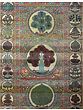 The artist now makes a double-lined border on all four sides of the canvas. The local artists are so expert in painting that they do not draw figures and motifs with pencil but directly draw them with a brush. The paint brushes that the painters use are made of the hair of domestic animals, a bunch of which is tied to the end of a bamboo stick. The figures are now painted with natural colors using the indigenous brushes. The outline is thickened with black color.