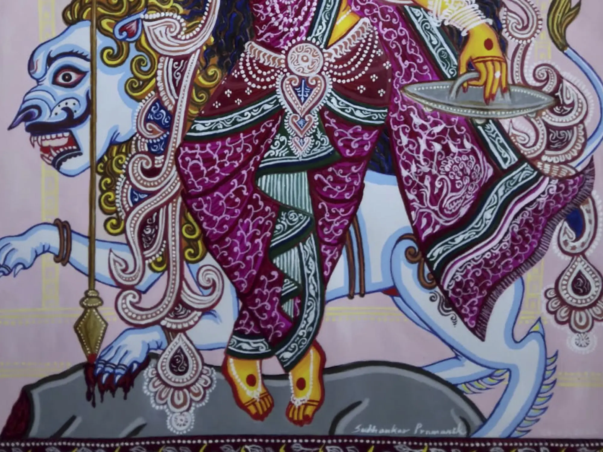 Durga and Her Bhakta | Acrylic Painting On Canvas | Mahadev Swarnakar