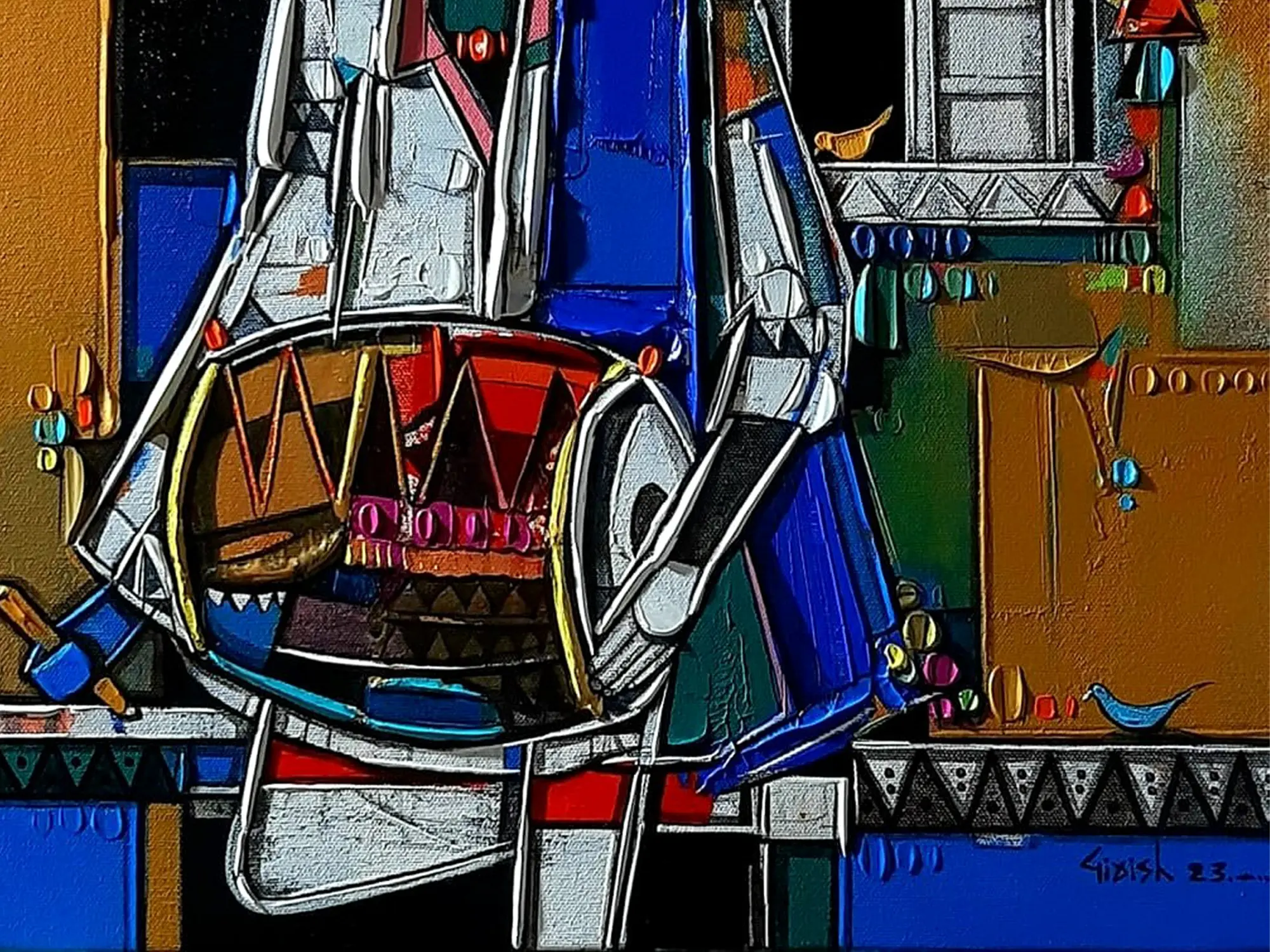 Lady Drummer | Painting by Girish Adannavar