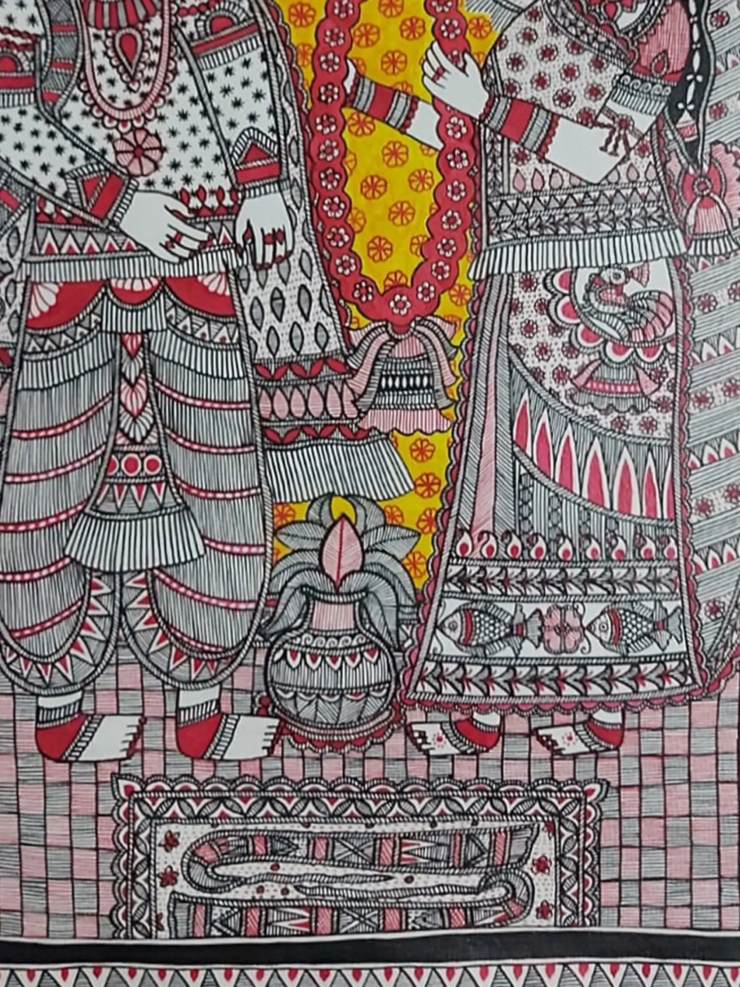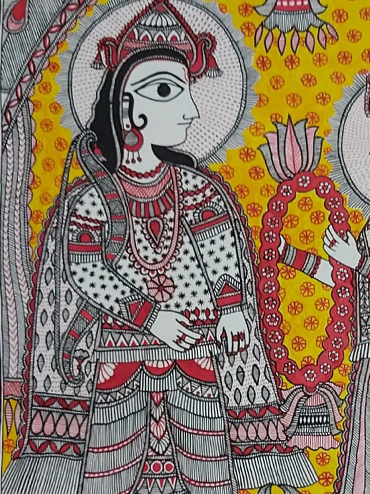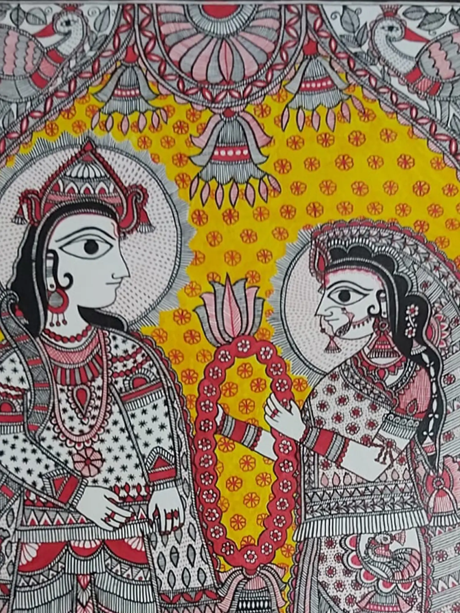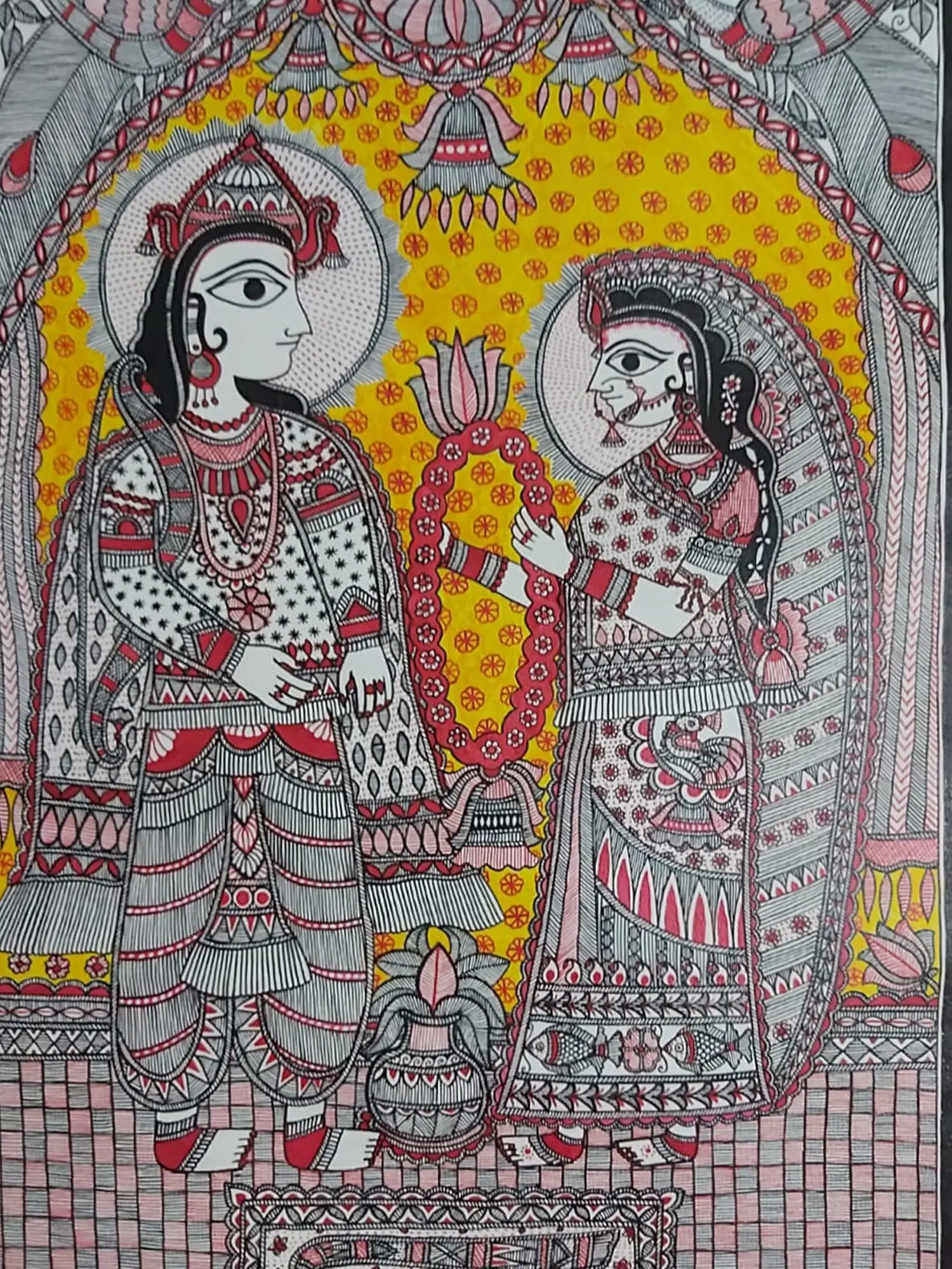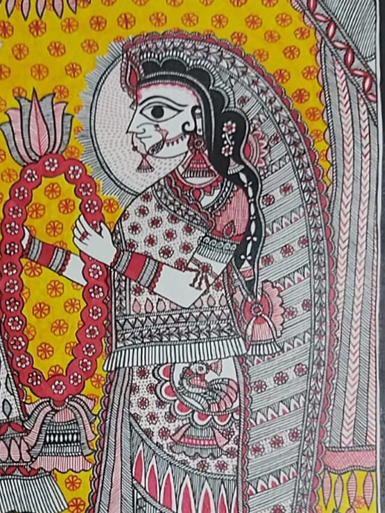 Floral Kohbar Madhubani Painting | Natural Colors On Handmade Paper | By Priti Karn
