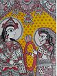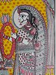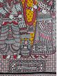 The striking composition, measuring 30 inches in height and 22 inches in width, draws you into its narrative with its vibrant yet harmonious palette. Observe the symbolic use of color, the delicate linework that defines the divine figures and their ornate adornments, and the rich textures of the handmade paper that offer a subtle tactile dimension. Each element is thoughtfully placed, creating a balanced and captivating visual experience that enchants the discerning eye.