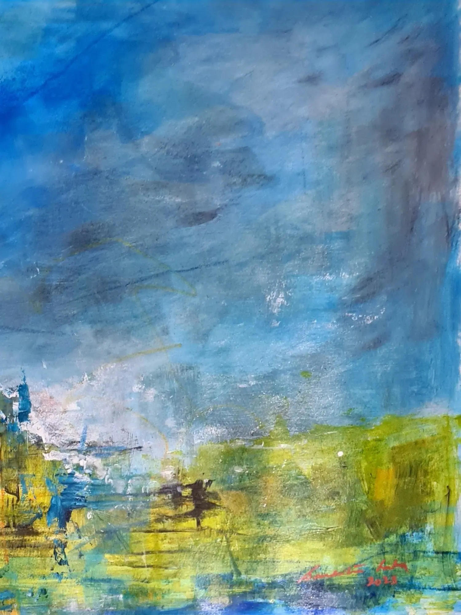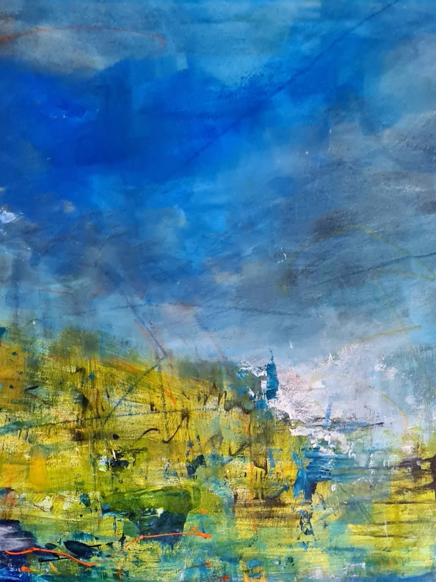 Under A Blue Sky | Acrylic Charcoal And Oil Pastel On Treefree Paper | By Suchitra Lata