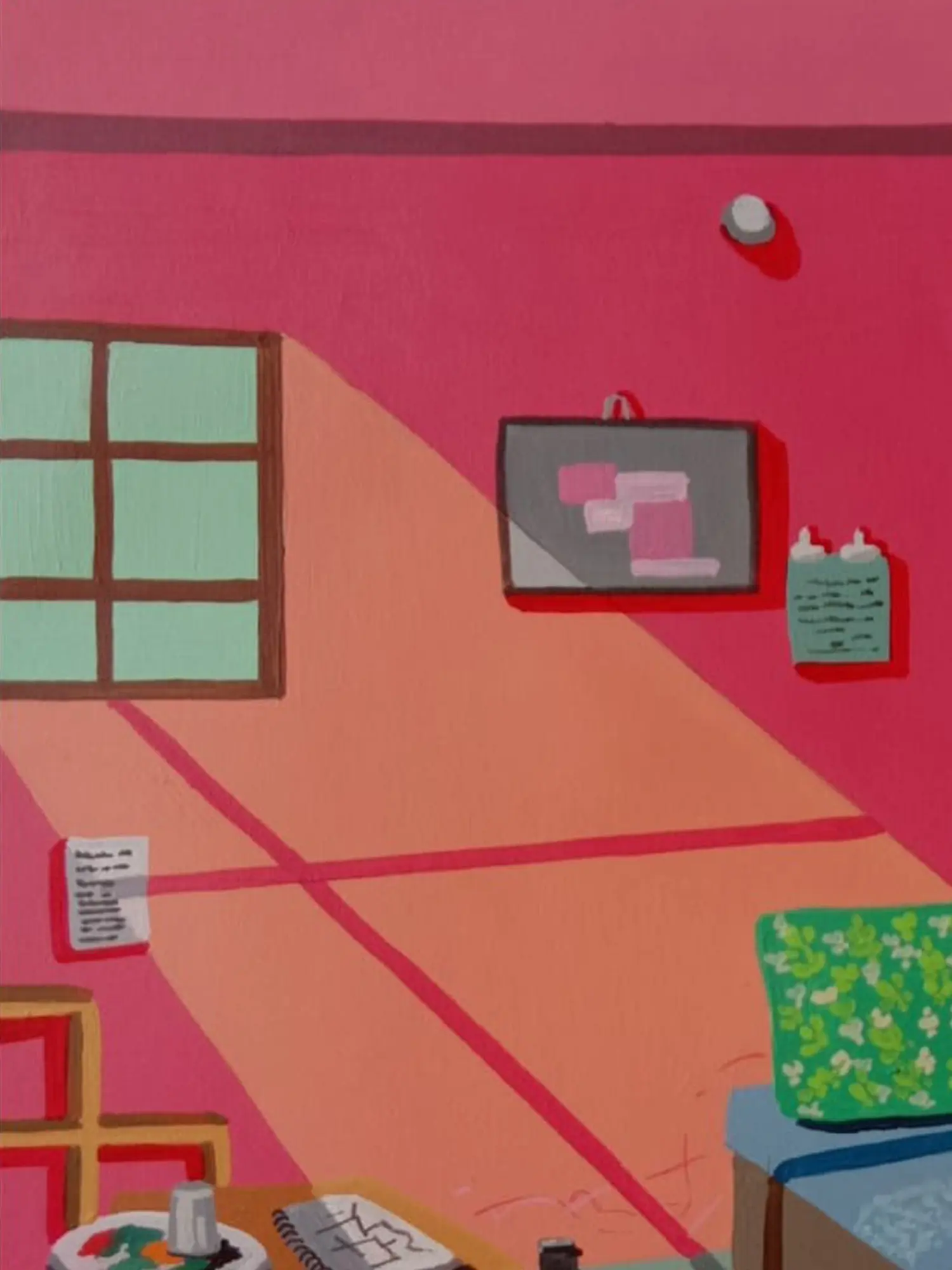 One’s room is the mirror of one’s mind. The details, decors, and even clutter underline the state of a person. In this acrylic on canvas, titled “Unplanned”, the artist has given a peek into the room of a young and artistic mind. The window is astutely placed on the canvas, to let the light enter the room, creating a spotlight effect in the artwork, and lighting up its fine details.