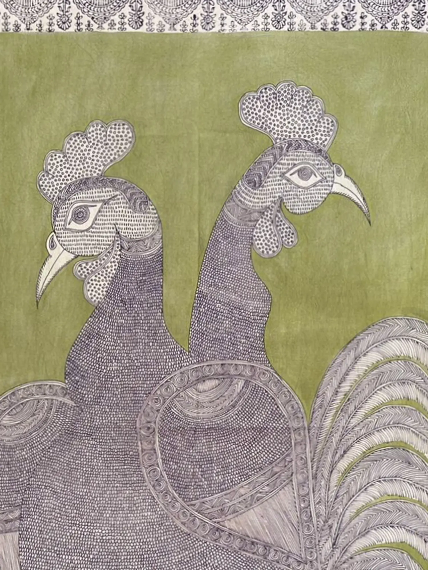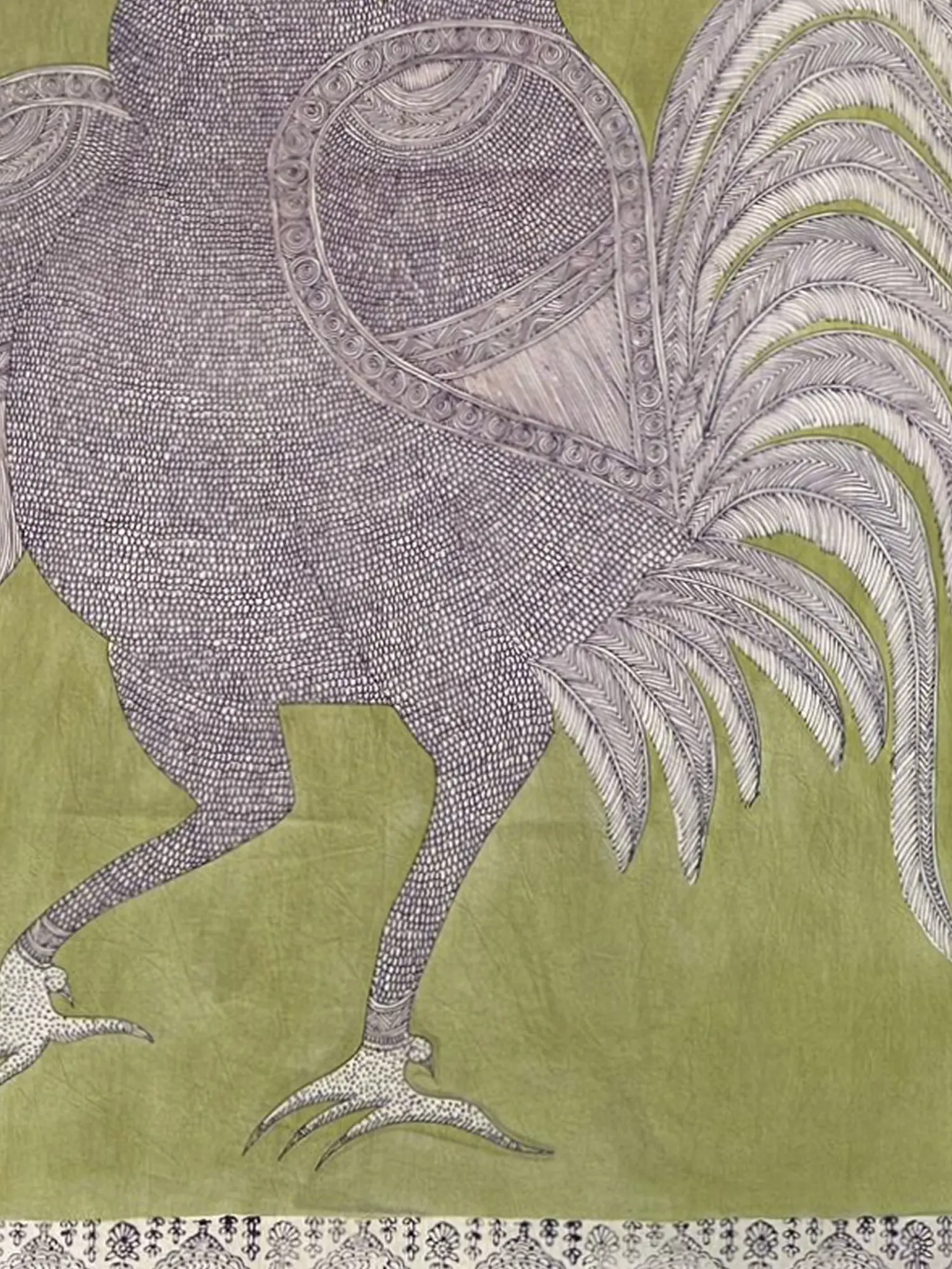 Each stroke is a testament to generations of artistic lineage, meticulously rendered on a natural cotton cloth. You'll appreciate the delicate yet assured application of natural colors, a technique passed down through the Chitara family. The intricate detailing showcases an unwavering dedication to craft, transforming simple materials into a masterpiece of profound depth and texture.