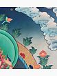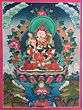 A Thangka is a traditional Tibetan Buddhist painting that usually depicts a Buddhist Deity (Buddha or Bodhisattva), a scene, or a mandala. These paintings are considered important paraphernalia in Buddhist rituals. They are used to teach the life of the Buddha, various lamas, and Bodhisattvas to the monastic students, and are also useful in visualizing the deity while meditating. One of the most important subjects of thangkas is the Bhavacakra (the wheel of life) which depicts the Art of Enlightenment. It is believed that Thangka paintings were developed over the centuries from the murals, of which only a few can be seen in the Ajanta caves in India and the Mogao caves in Gansu Province, Tibet.