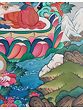 The process of making a thangka begins with stitching a loosely woven cotton fabric onto a wooden frame. Traditionally, the canvas was prepared by coating it with gesso, chalk, and base pigment.