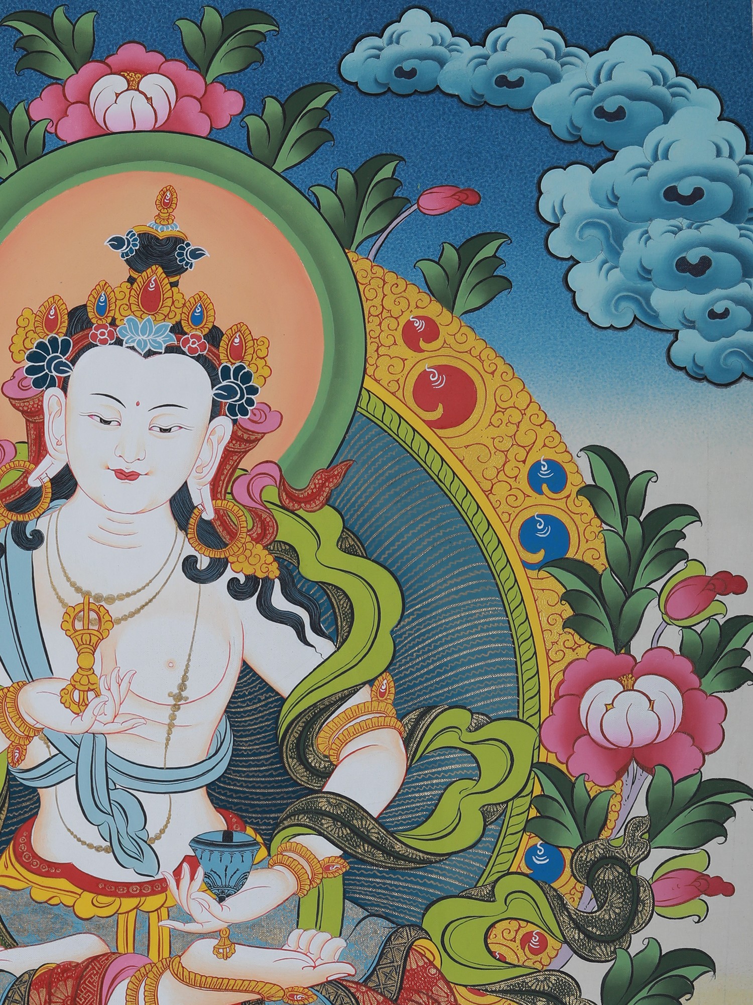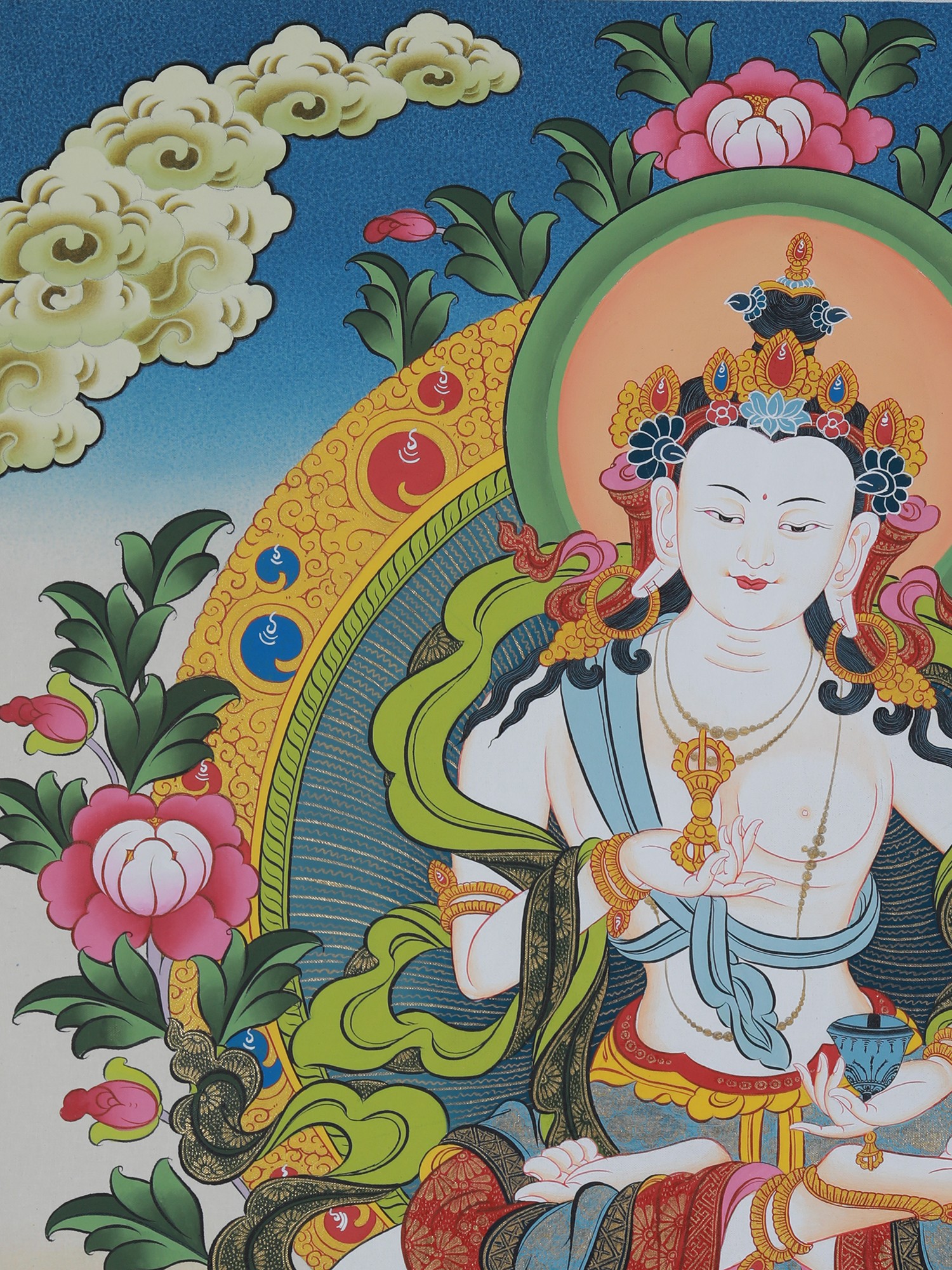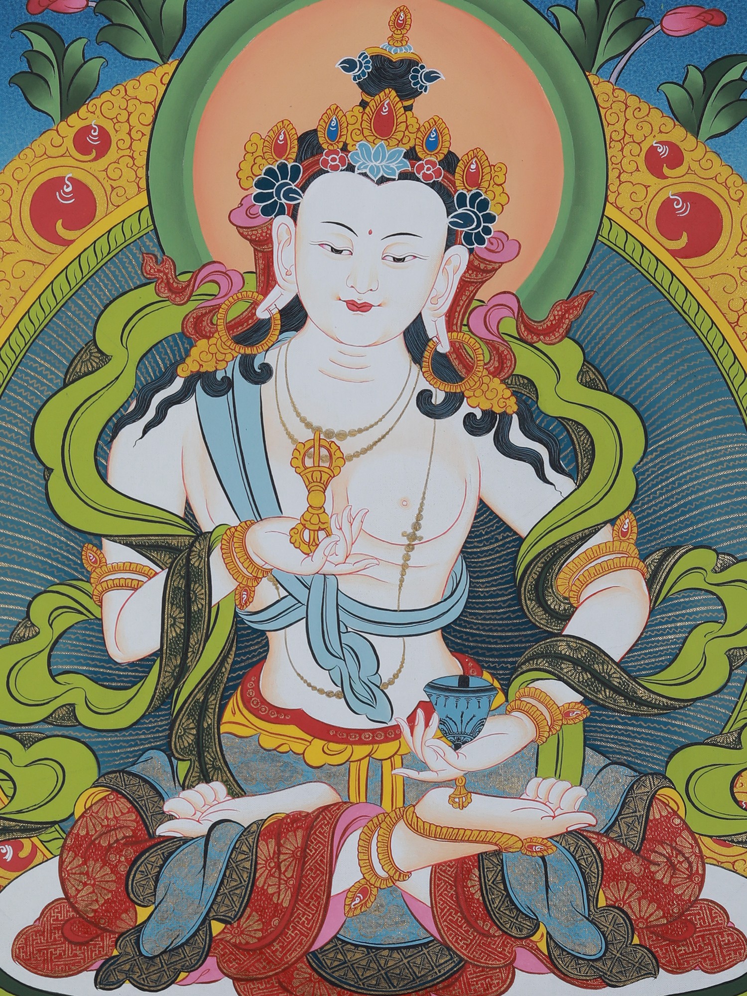 Vajrasattva Thangka Art (Brocadeless) | Pure 24 Carat Gold, Acrylic Paint