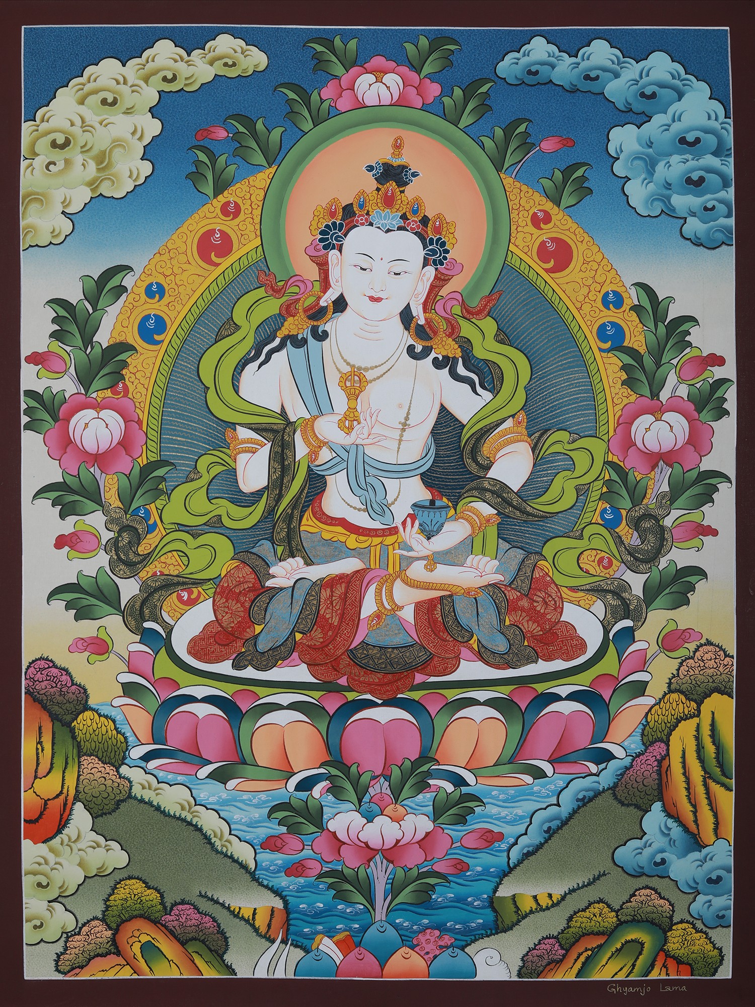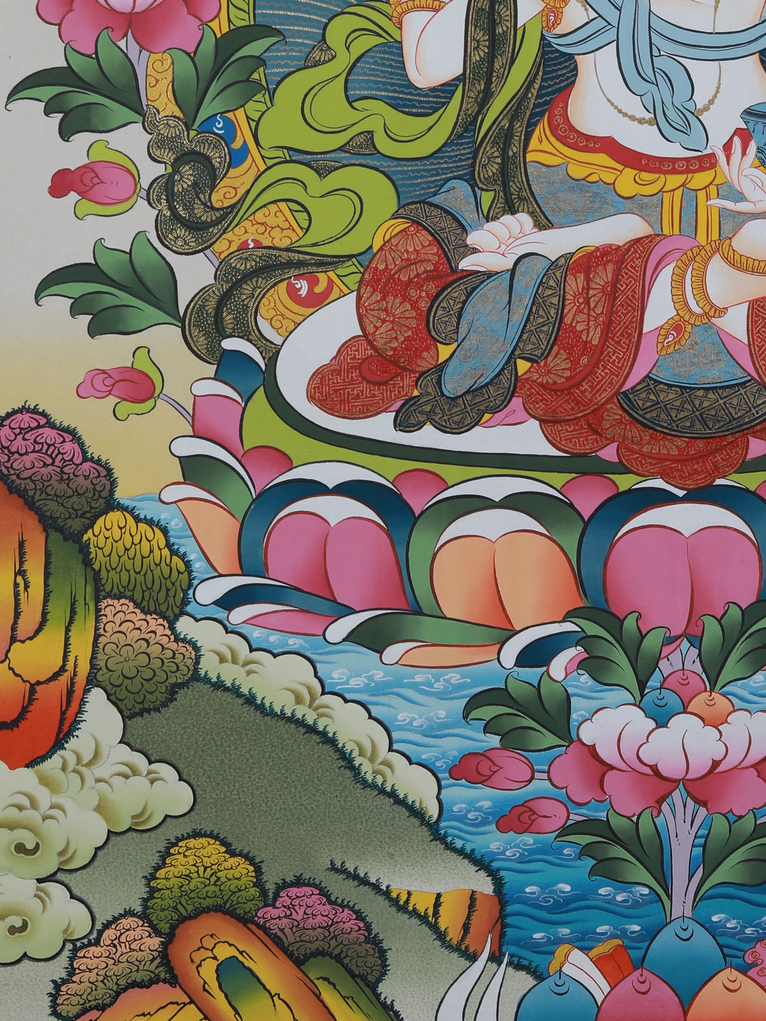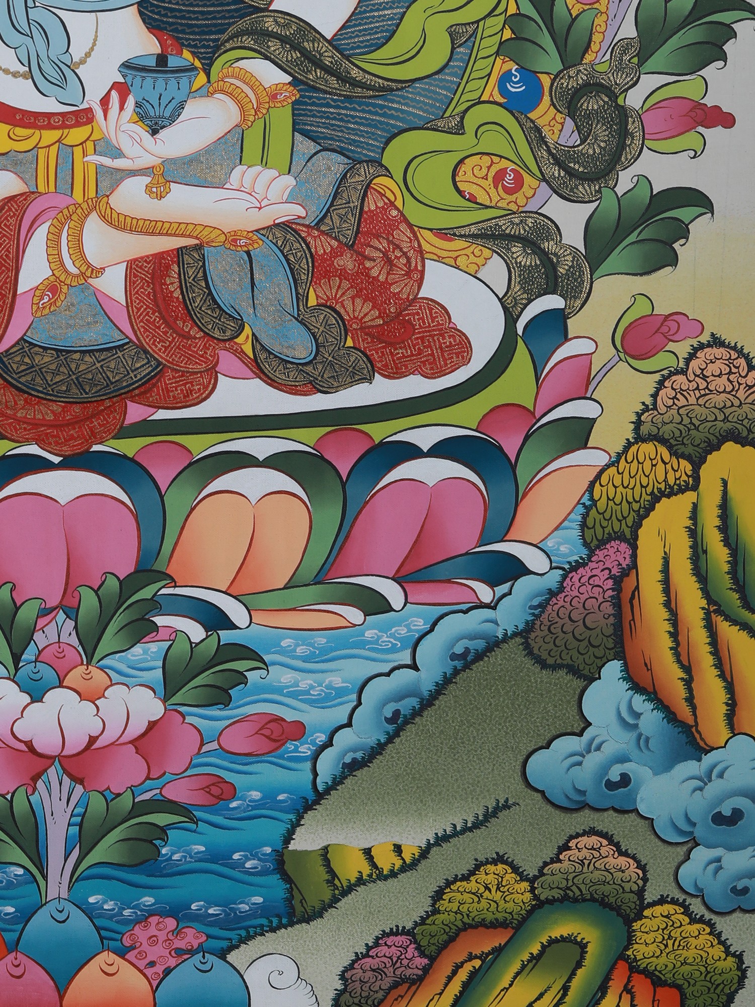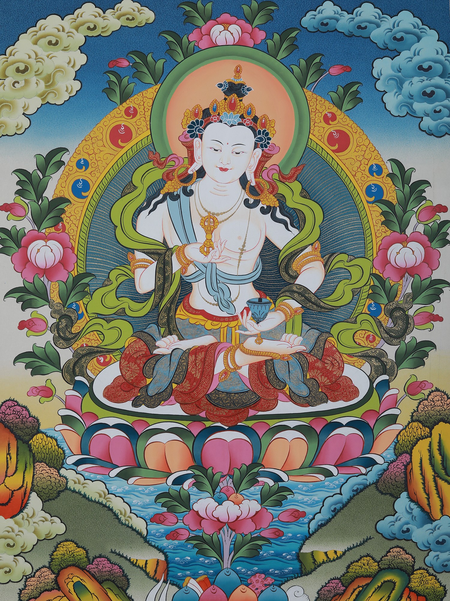 Vajrasattva Thangka Art (Brocadeless) | Pure 24 Carat Gold, Acrylic Paint