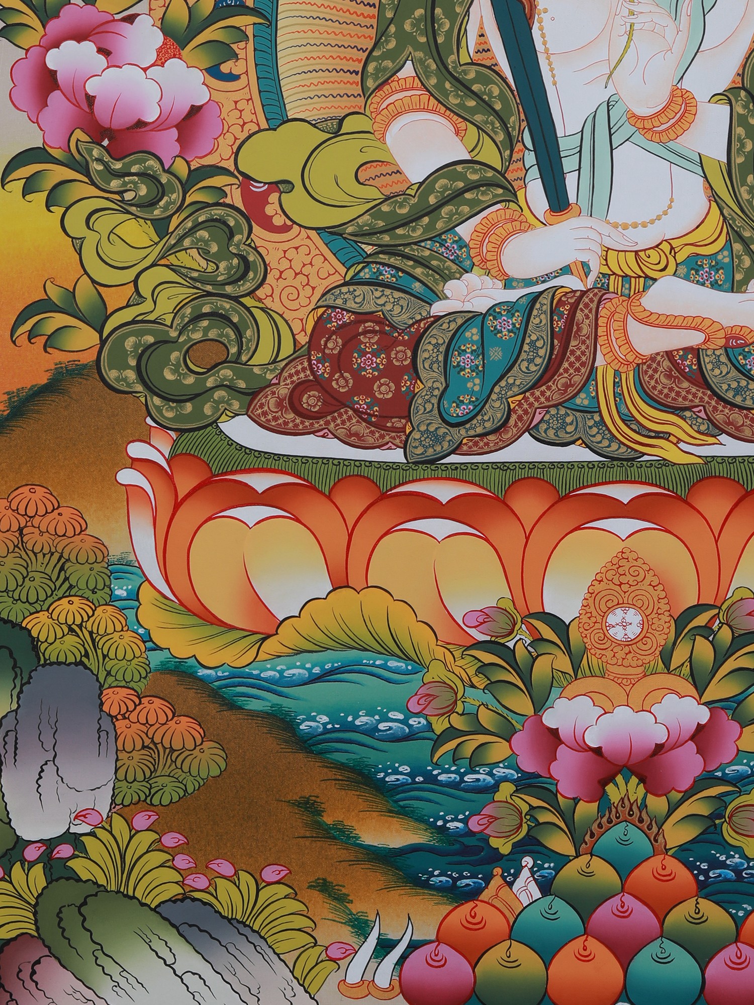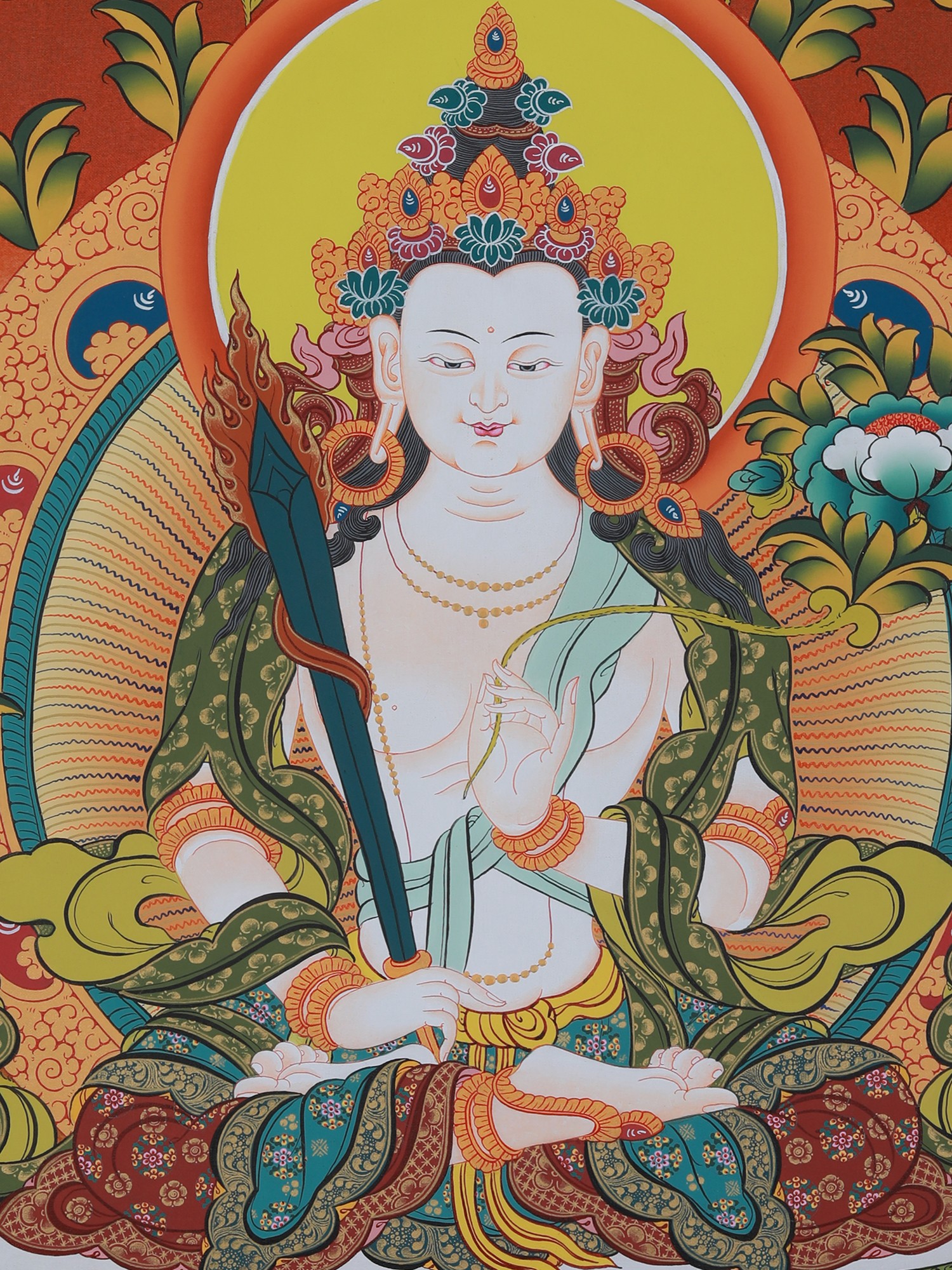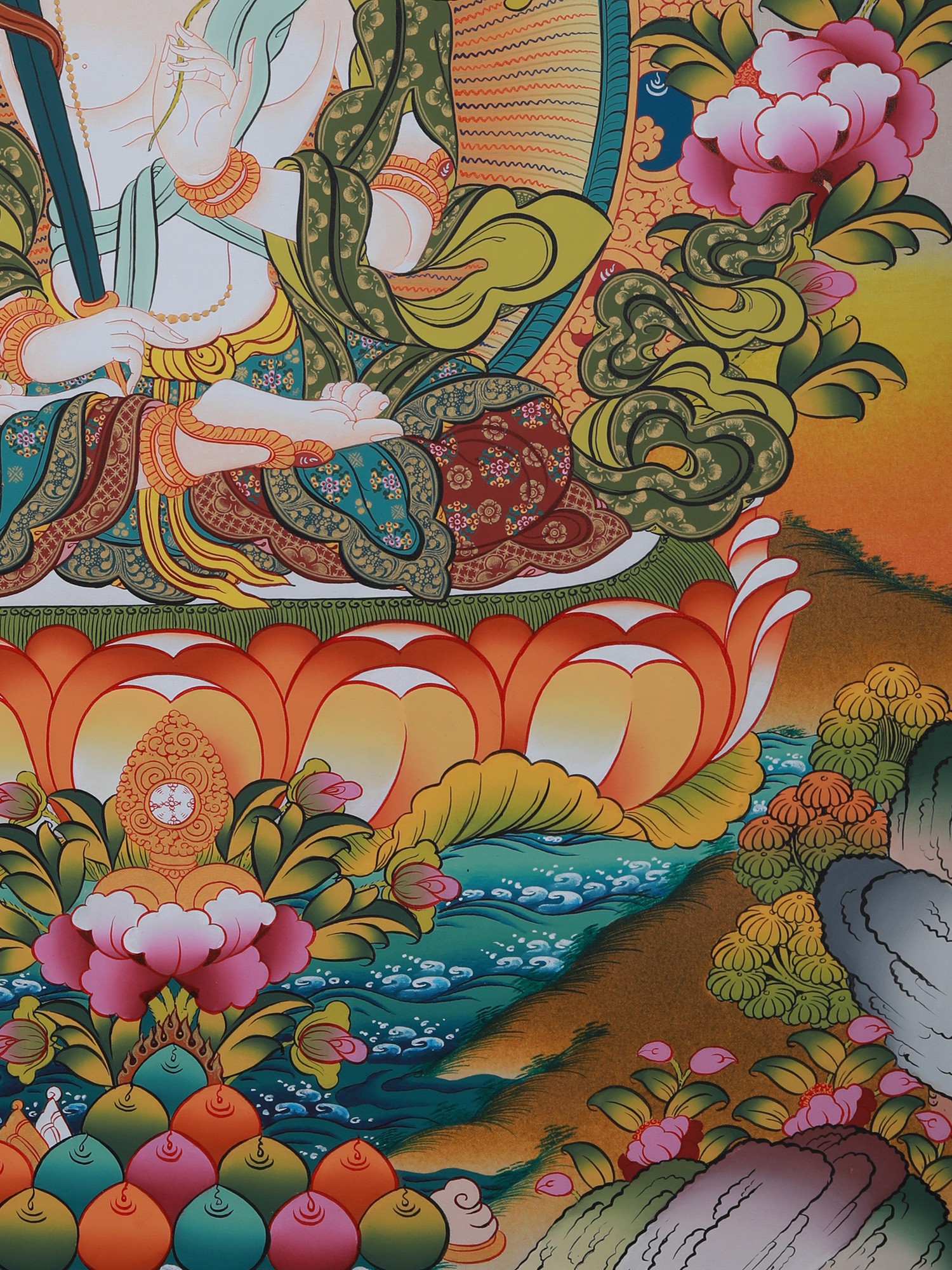 Vajrasattva Thangka Art (Brocadeless) | Pure 24 Carat Gold, Acrylic Paint