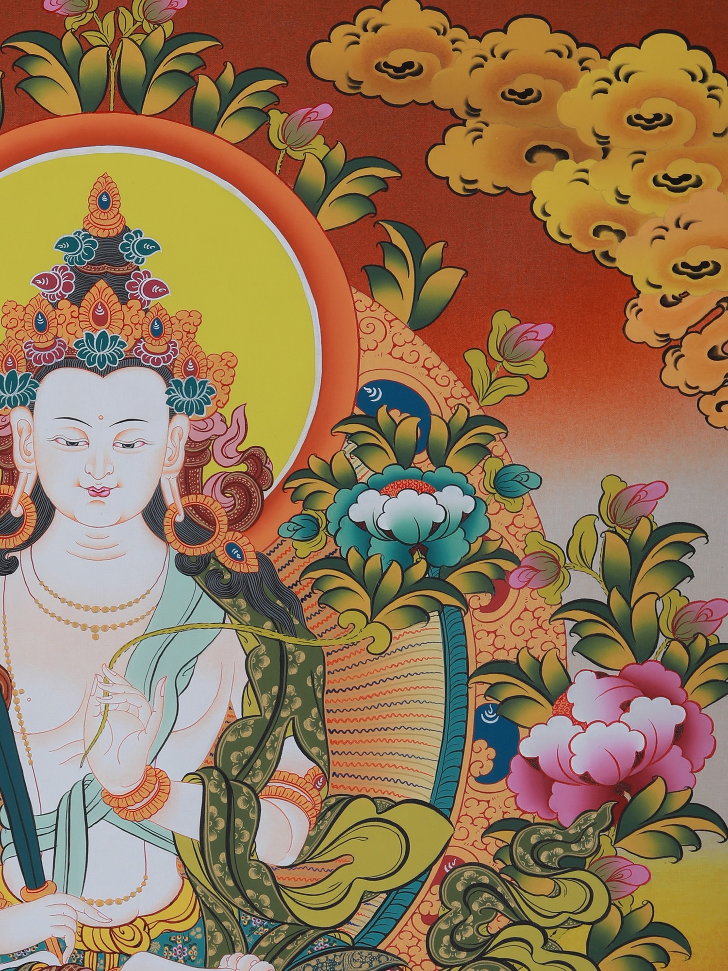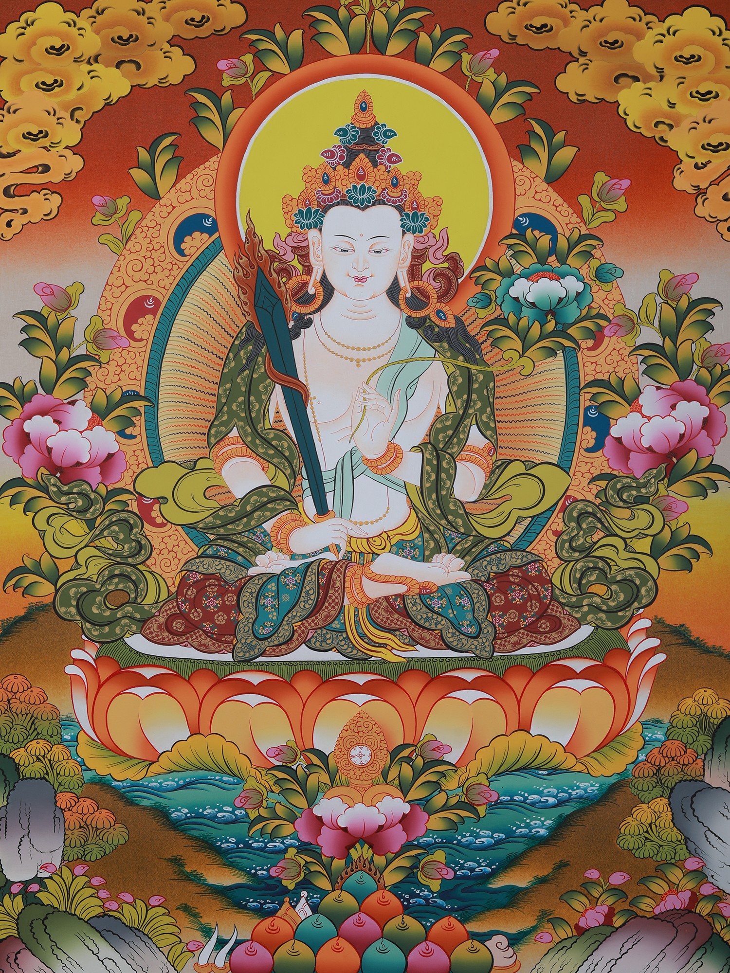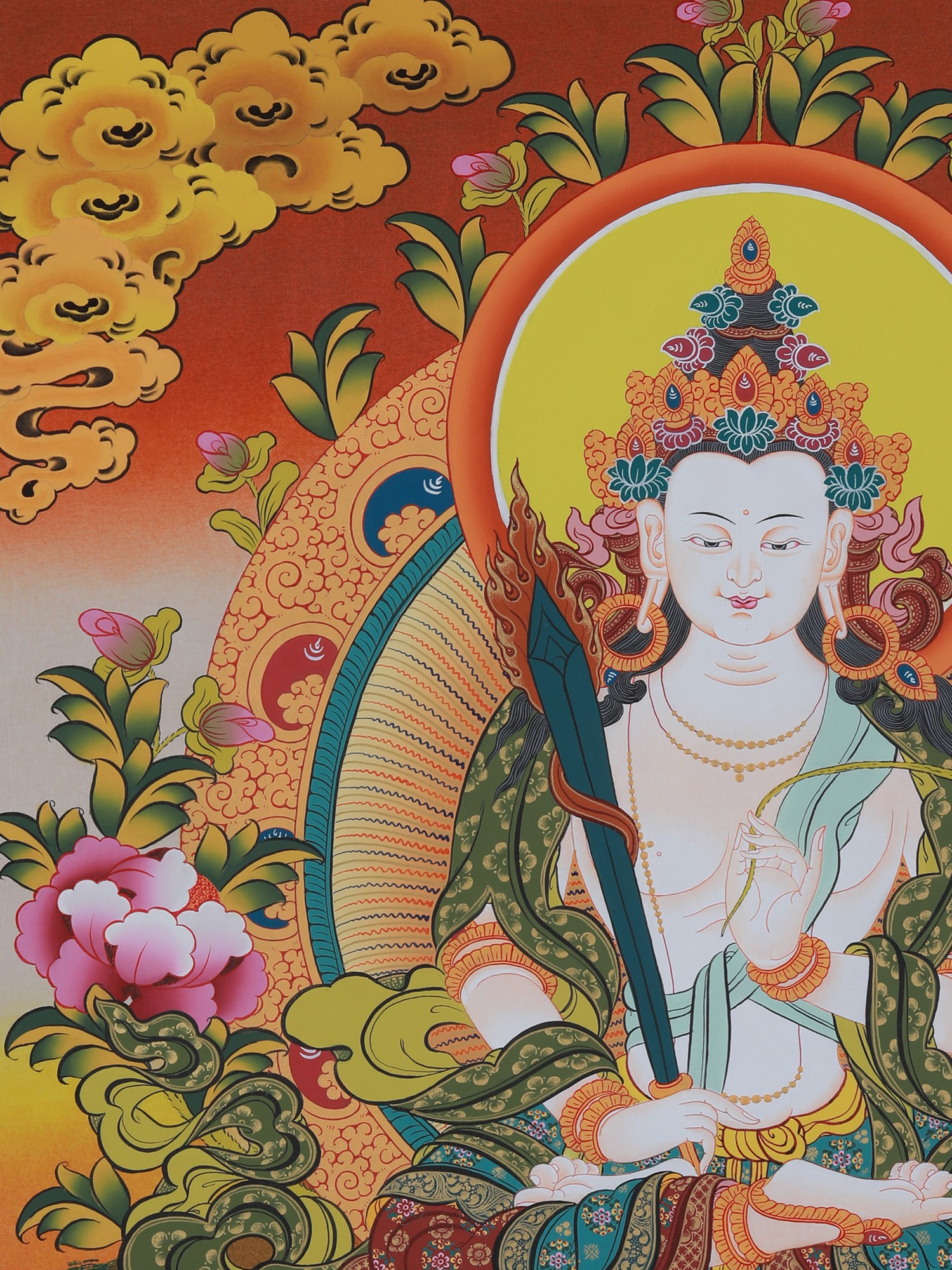 Vajrasattva Thangka Art (Brocadeless) | Pure 24 Carat Gold, Acrylic Paint
