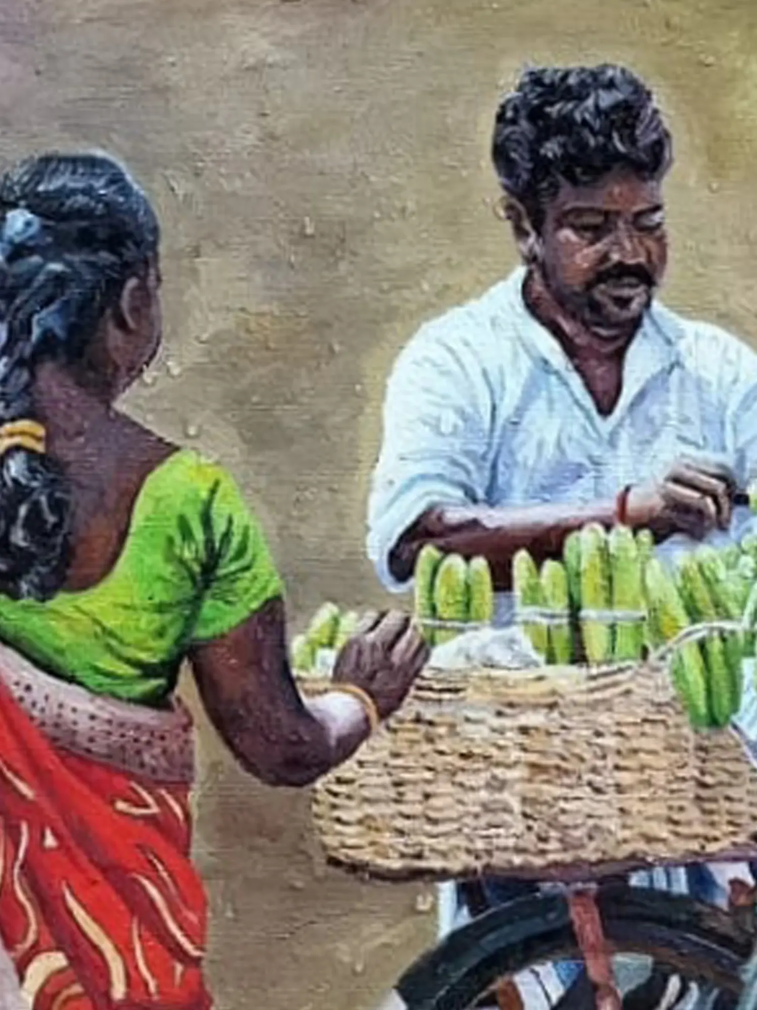 This artwork offers a poignant reflection of rural and semi-urban life, a visual narrative that resonates with authentic cultural experiences. It speaks to the enduring traditions of local markets and the simple dignity of those who sustain them. The scene evokes a sense of place and a connection to the stories that shape our collective memory.